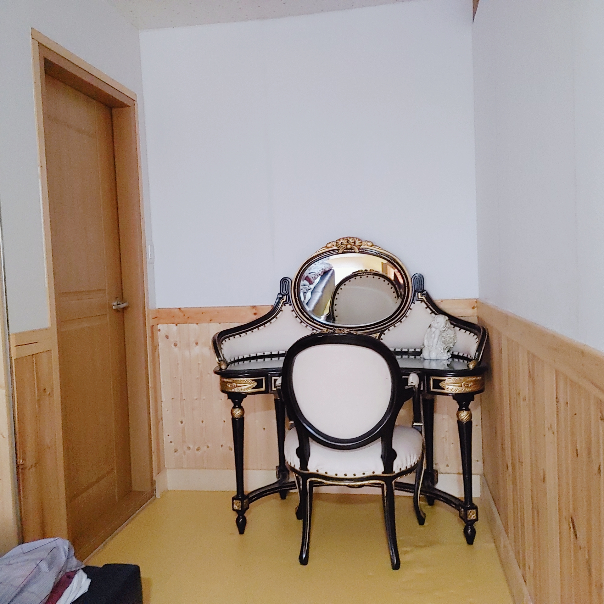 올라가면 바로 화장대가 보이고, 옆에 문은 화장실이랍니다. 2층에도 화장실은 하나 더 있어요. 정말 딱 변기만 있어요. 세면대도 없더라고요.