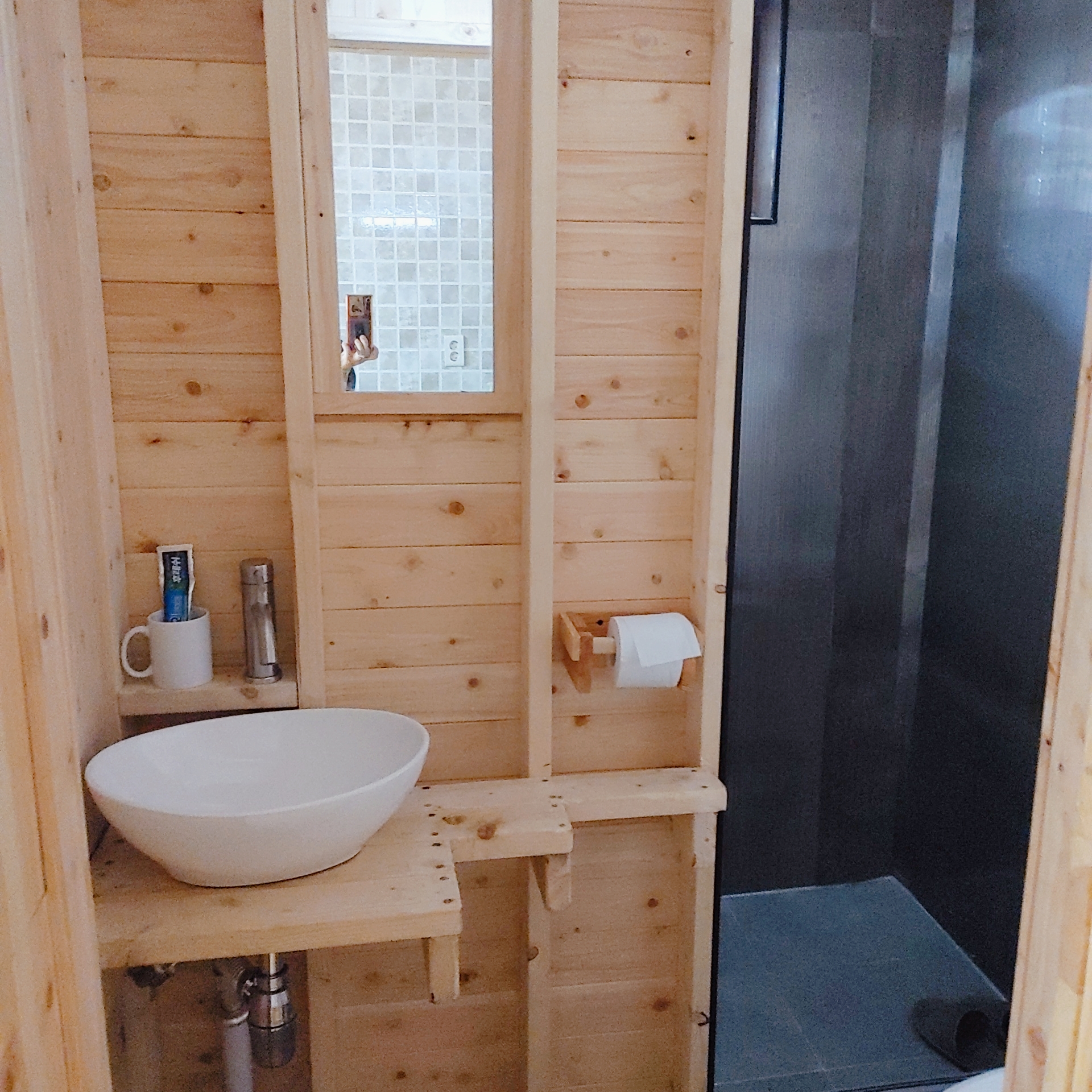 아이들 씻길 때 좁아서 불편했는데, 고운재 4번 방은 3번 방보다 1층화장실이 2배는 큰 거 같았어요. 확실히 넓더라고요.