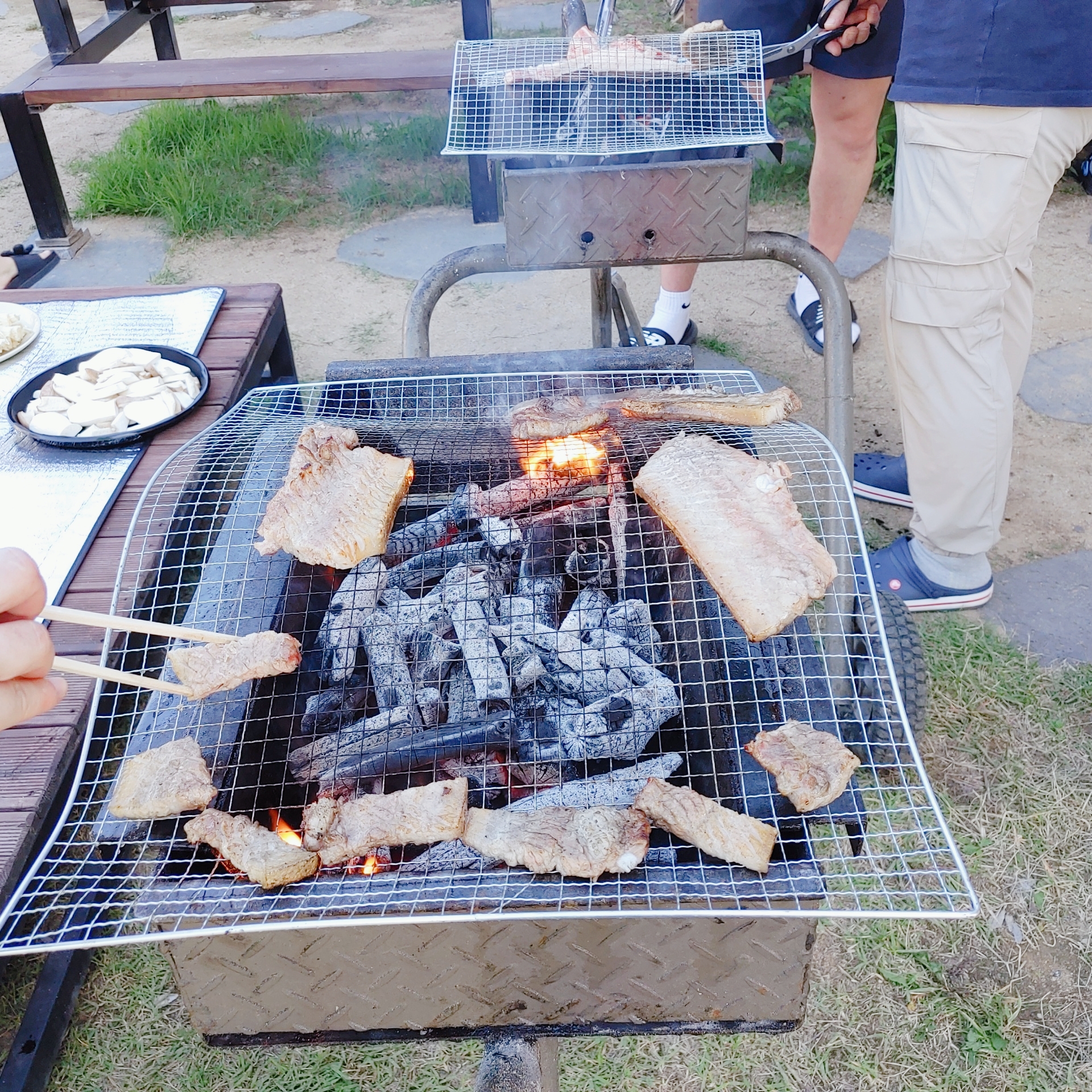 테이블과 의자가 부족해서 저희 차에 있는 캠핑용품들이 자꾸 나왔어요. ㅋㅋㅋㅋㅋ