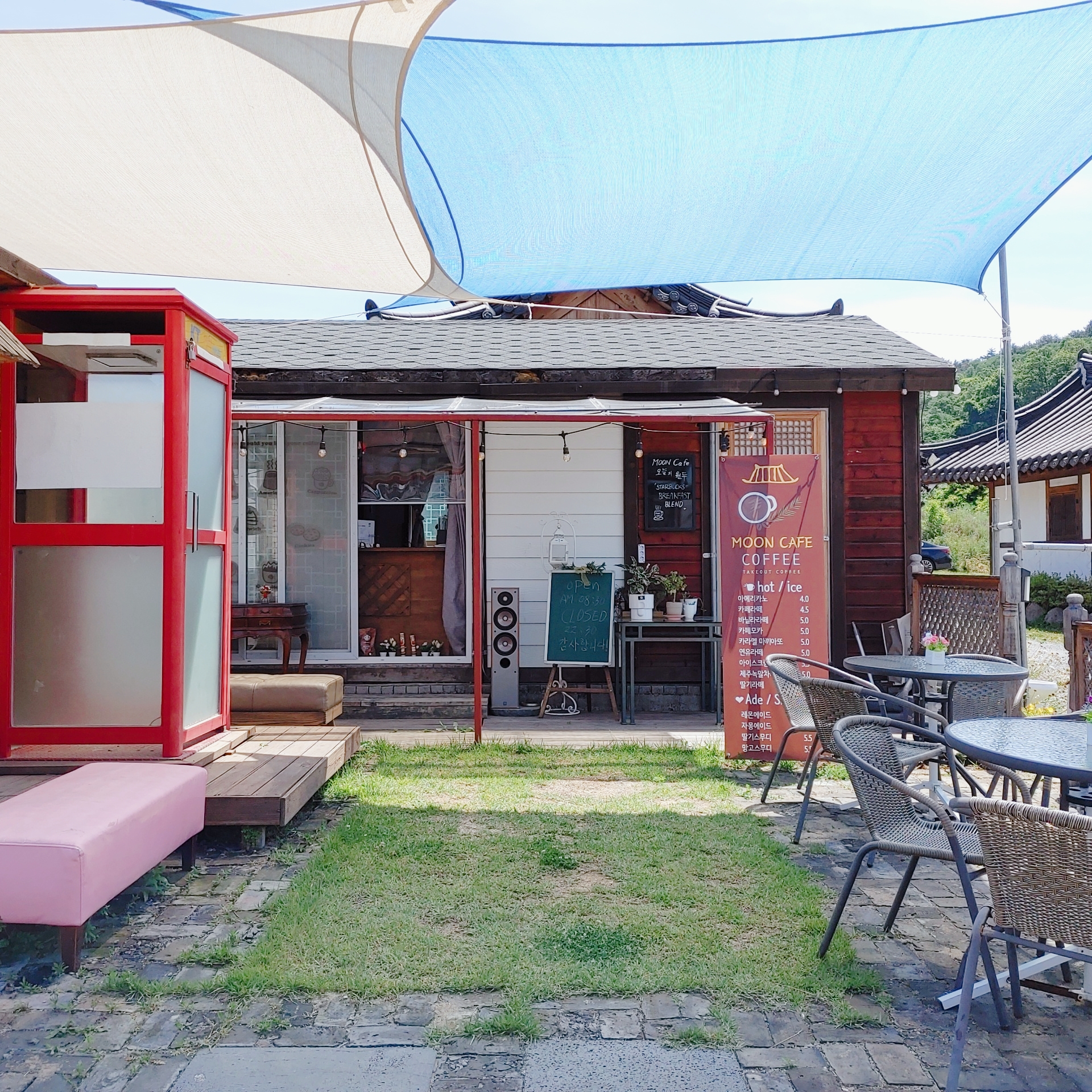 어디선가 커피냄새가 솔솔~ 나더라고요. 펜션 안쪽에 Moon 카페도 있었어요.