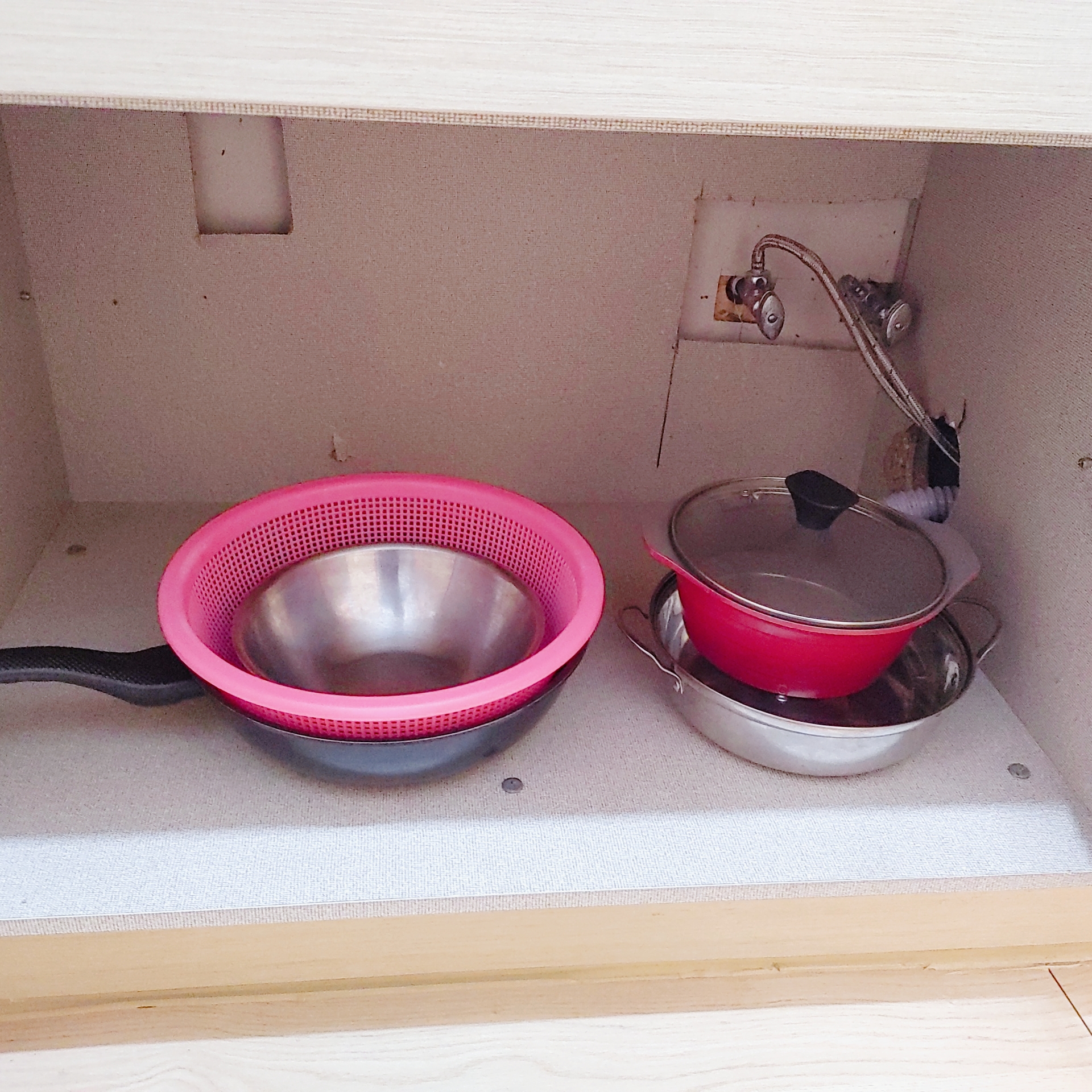 식기류들은 밥그릇, 축구릇, 가위와 집게는 여유롭게 있어요. 그런데 냄비는 최대 15명이 사용하기에는 너무 작답니다.