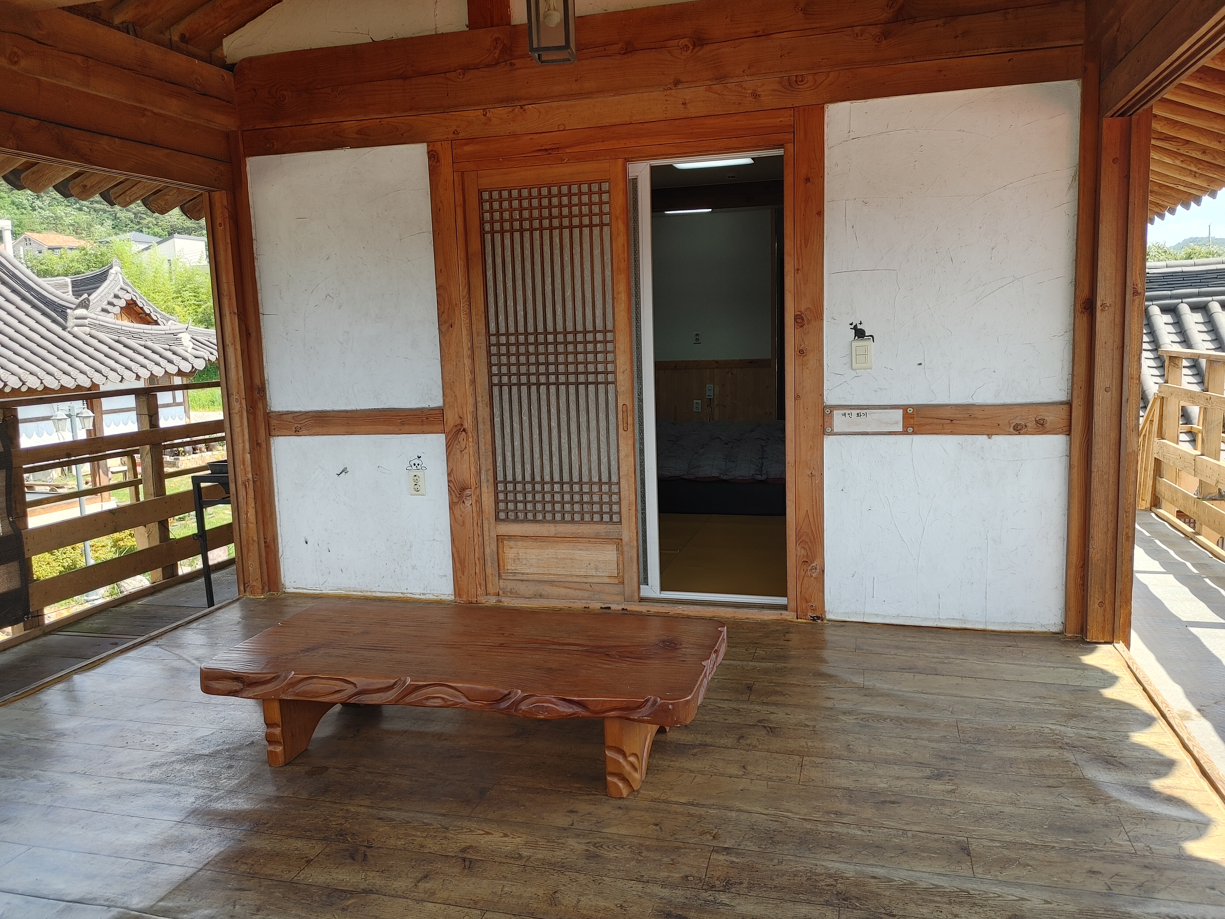 앞에 보이는 문을 열고 나가면 평상이 있어요.
