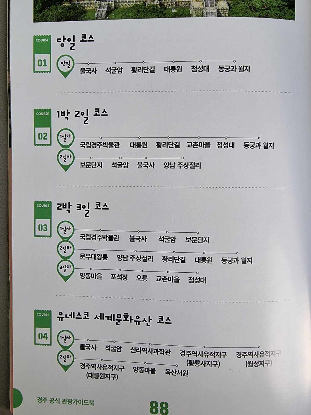경주 당일코스, 경주 1박 2일 코스, 2박 3일 코스별로 잘 정리되어 있었거든요.