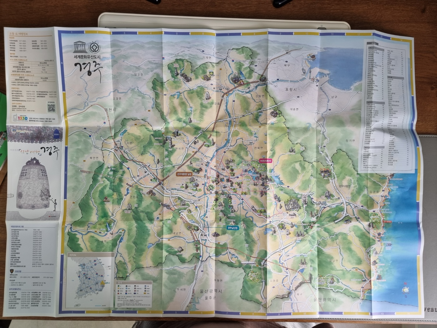 지도 앞면에는 경주의 전체 지도가 있어요.