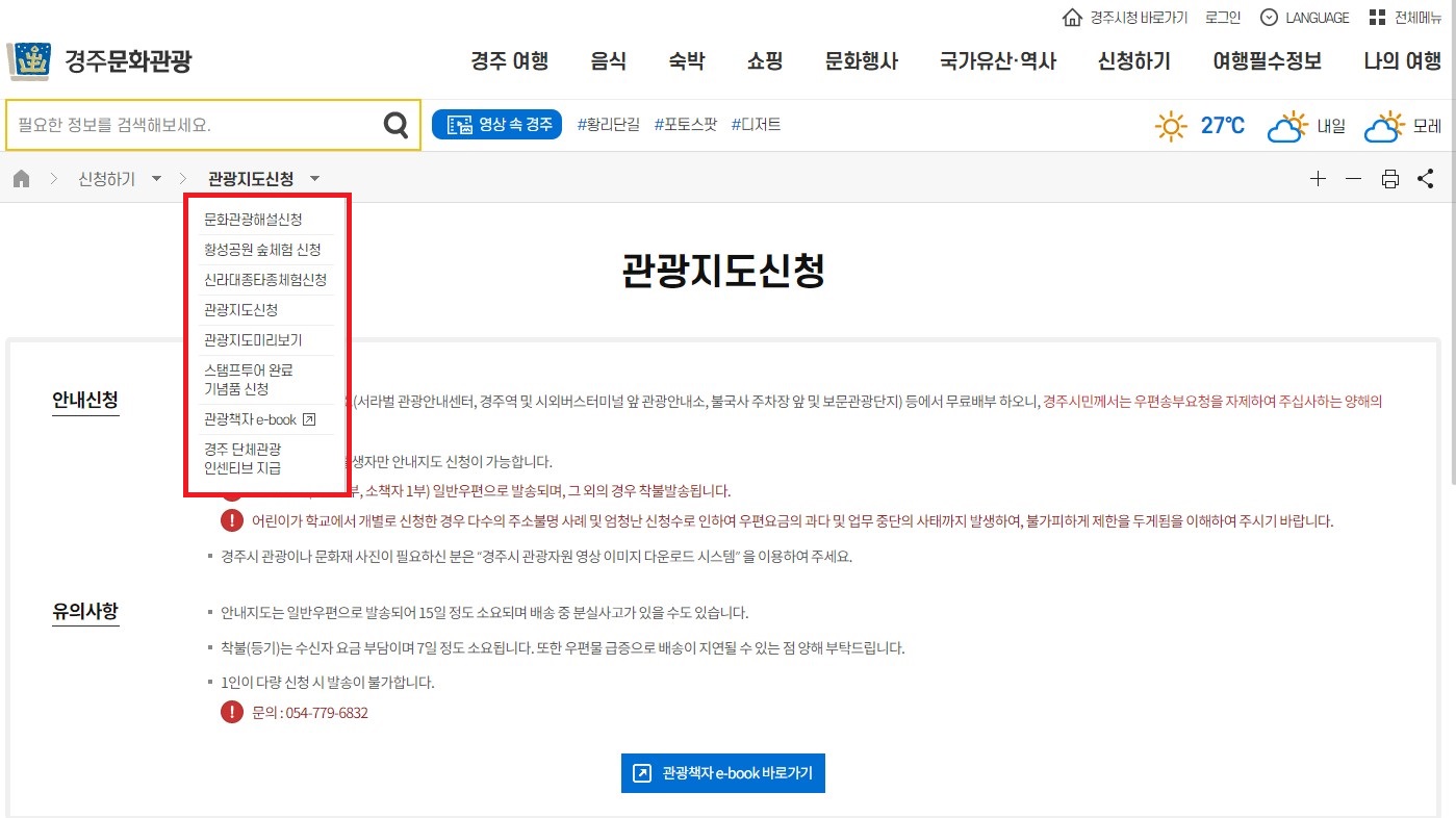 경주 관광지도 신청
