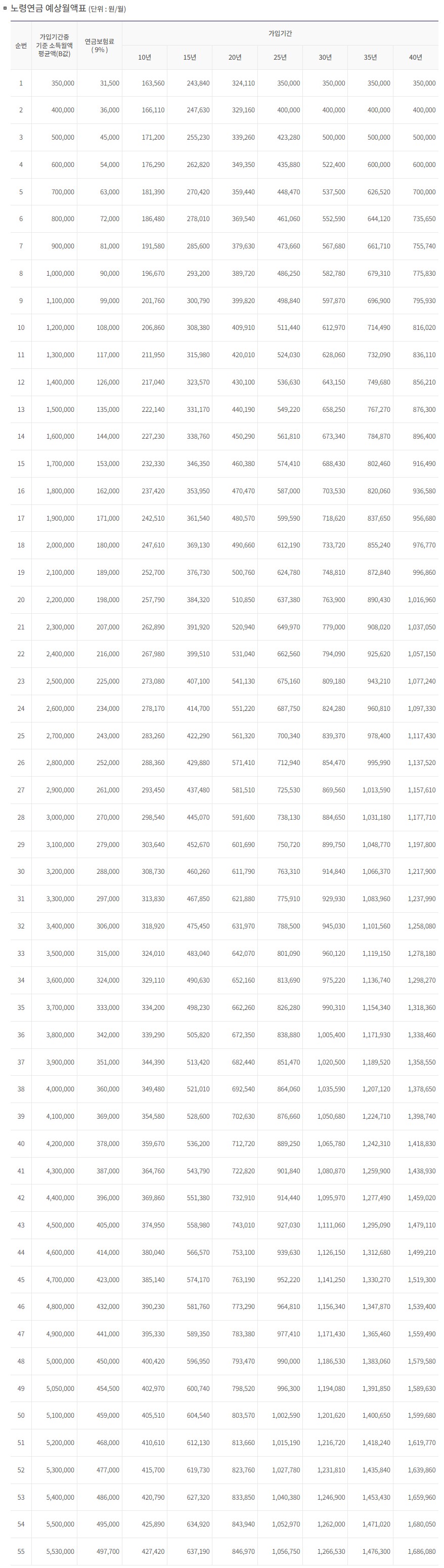 2. 예상연금 액 조회 / 본인확인 없이 예상연금액 조회