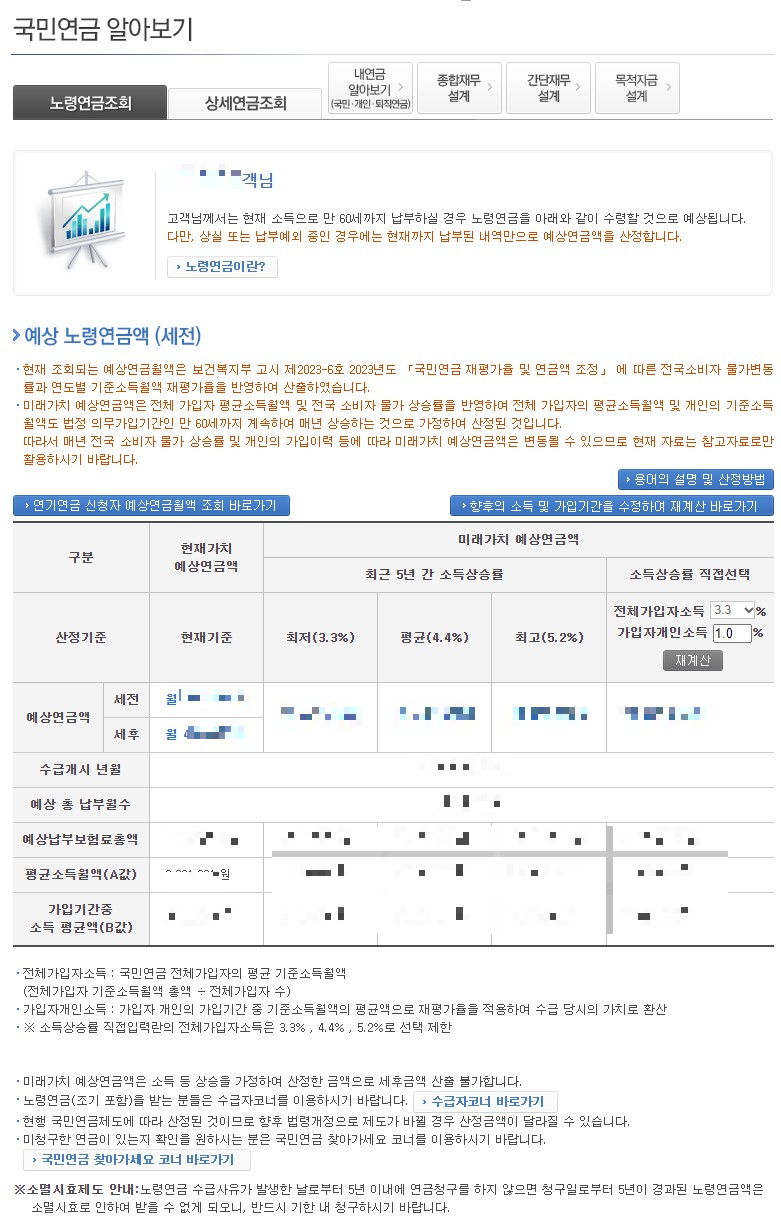 현재 받을 것이 아니라 향후 추정소득과 가입기간을 별도로 설정하여 재계산을 할 수도 있으니 참고하시기 바랍니다.