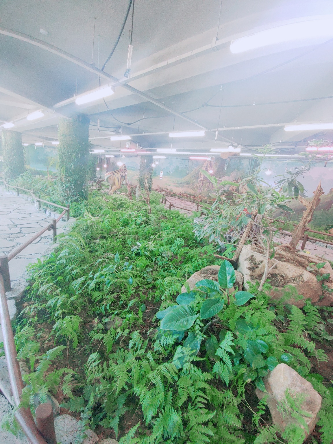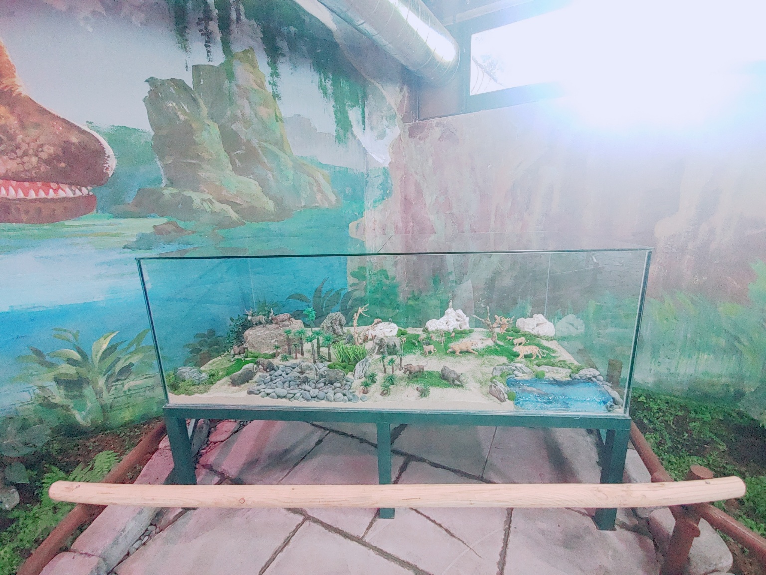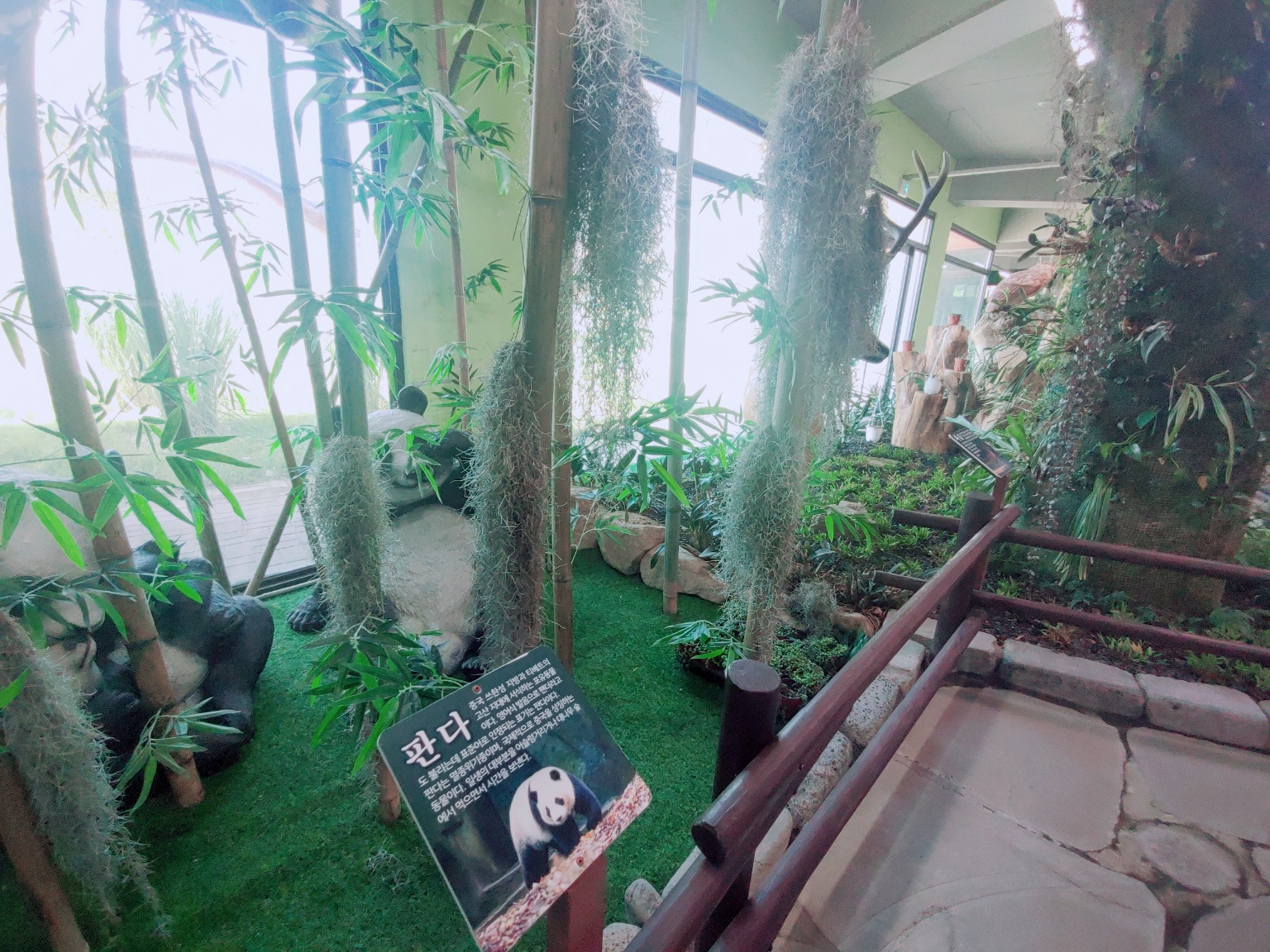 입구 오른쪽은 이끼정원 이랍니다. 이끼와 습지식물이 있고, 공룡 모형과 벽에도 공룡그림이 그려져 있어요.