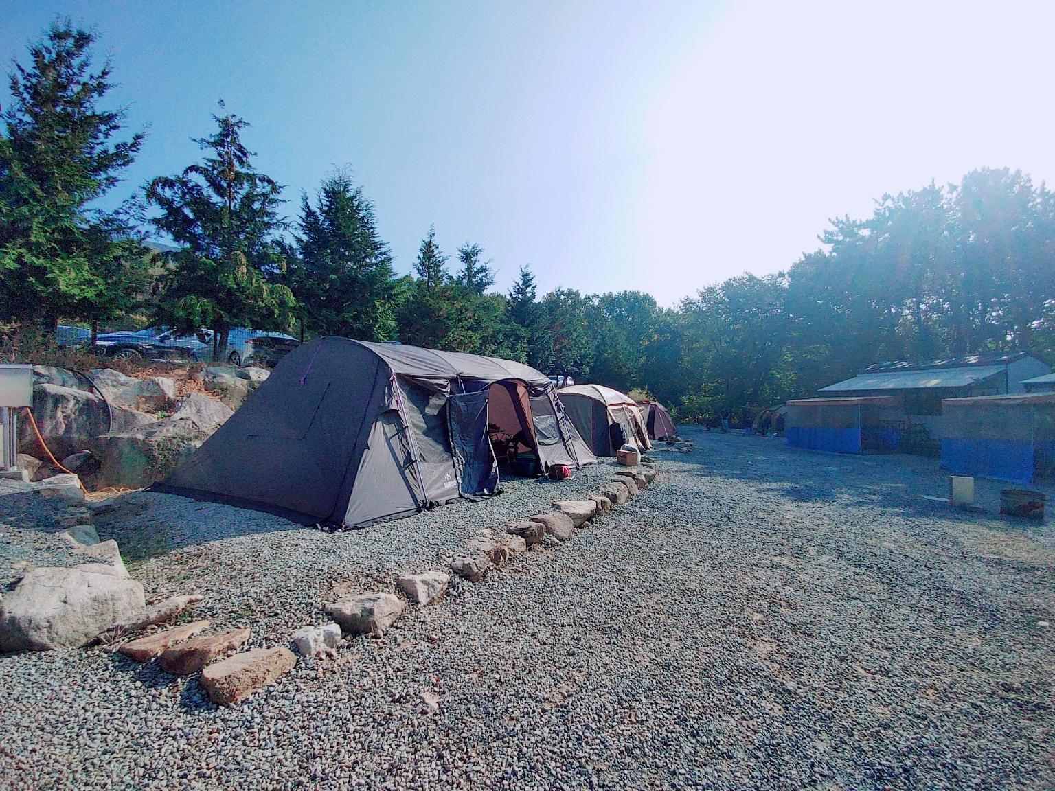 저희는 수로존 2번 사이트예요. 2,3,4번은 살짝 단이 있고, 텐트를 치고 나니 자리가 없더라고요. 돌담 아래쪽에서 불멍을 해야 했답니다.