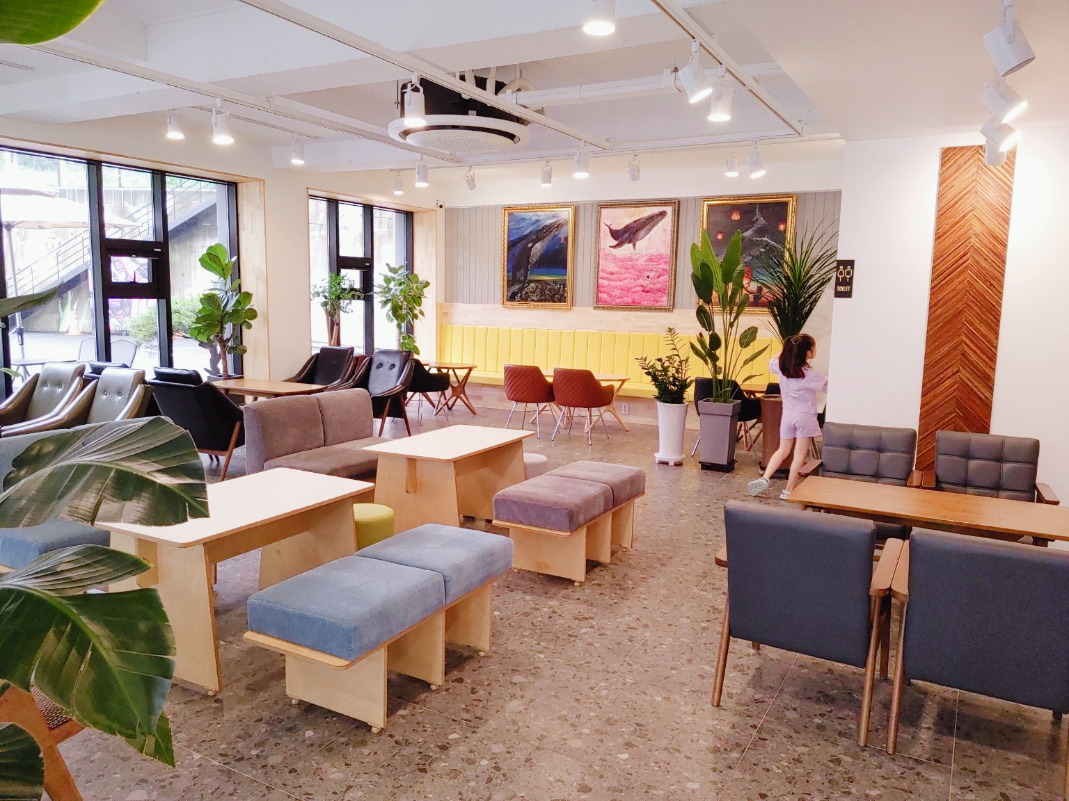 전체적으로 갈끔한 느낌의 카페랍니다. 소파도 알록달록하니 너무 이쁘더라고요.