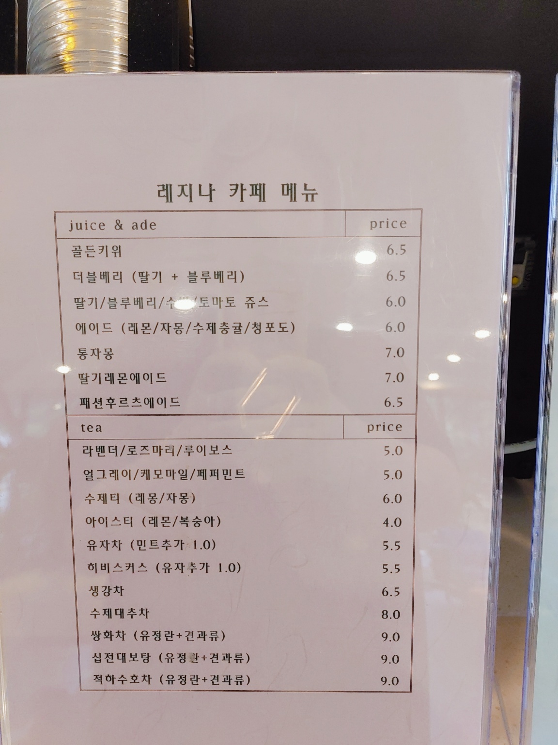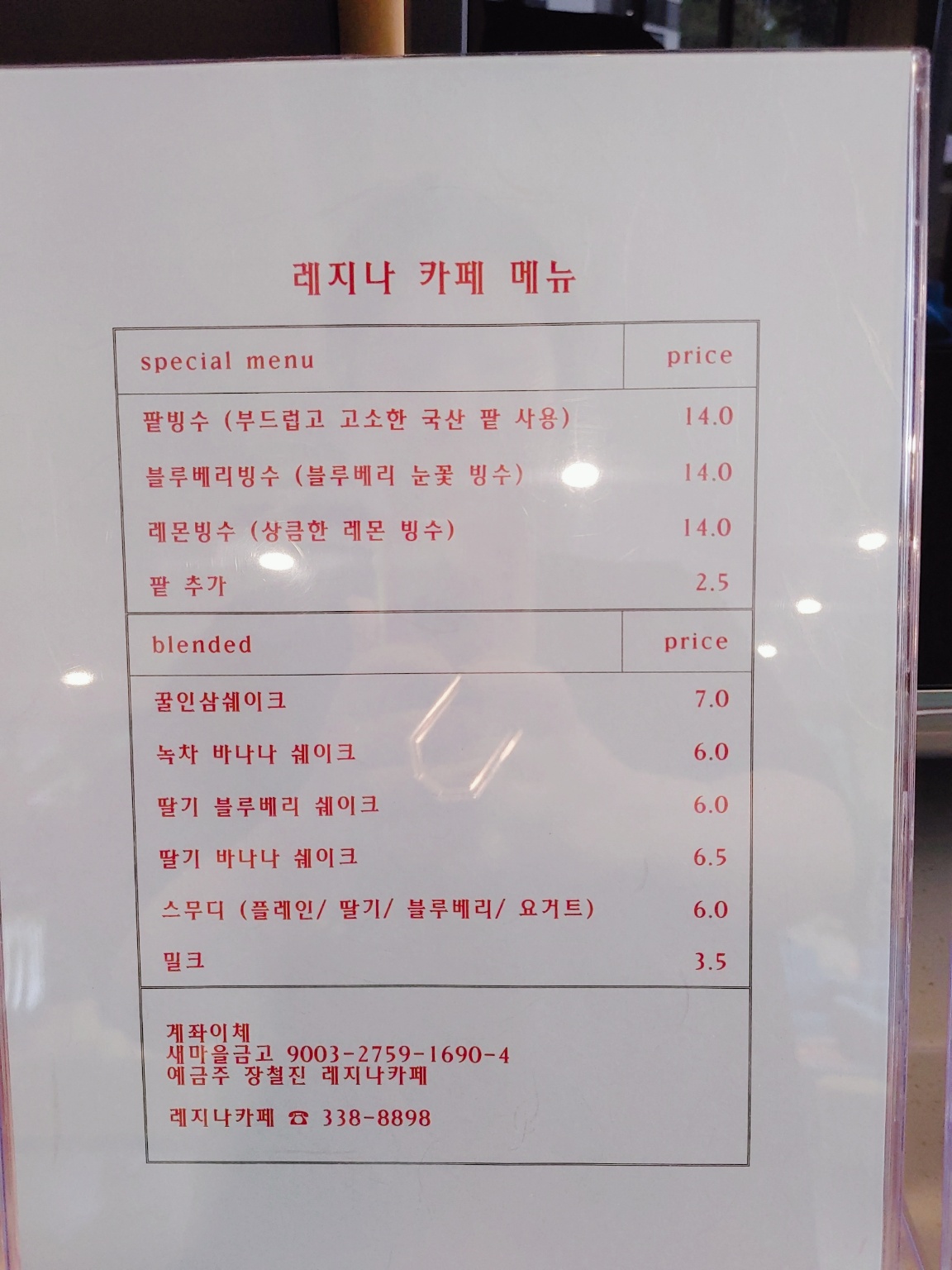카페레지나의 메뉴는 조금 특이했어요.