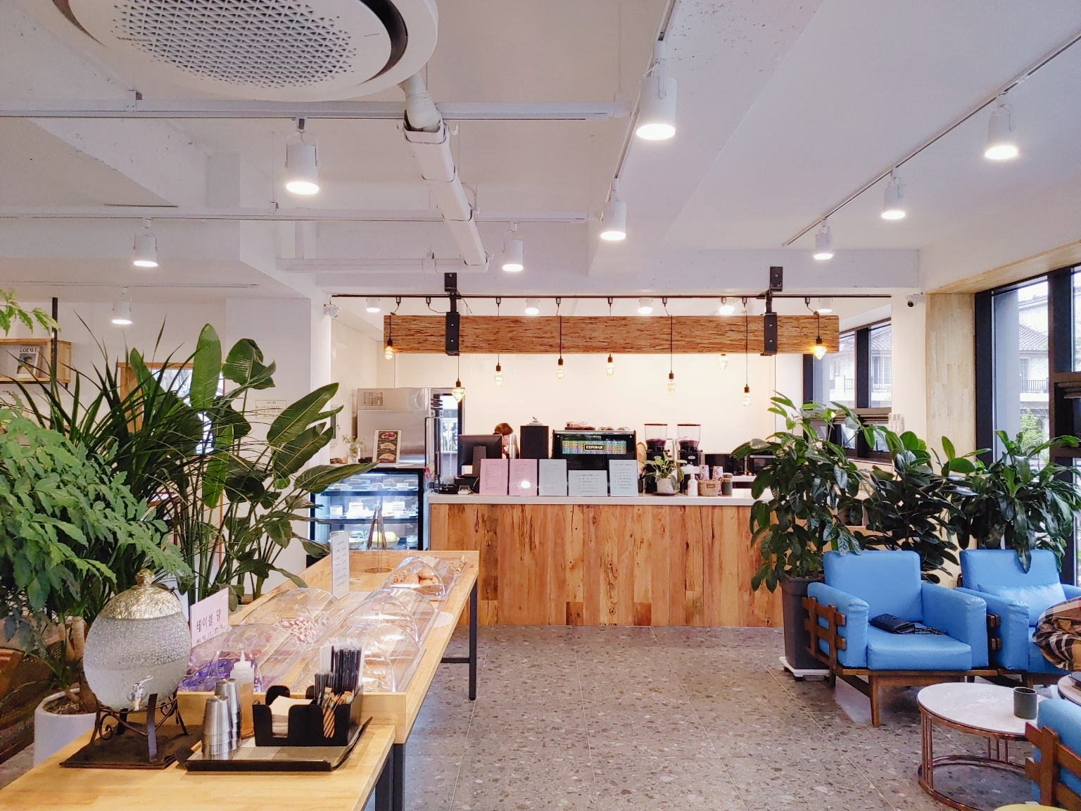 저희가 간시간이 평일 점심때라서 그런지 아직 손님이 많지는 않았어요. 테이블이랑 소파를 보니 오픈한 지 얼마 안 된 카페인 것 같아요. 단체룸도 있는데 다른 분들이 계셔서 사진은 찍지 못했어요.