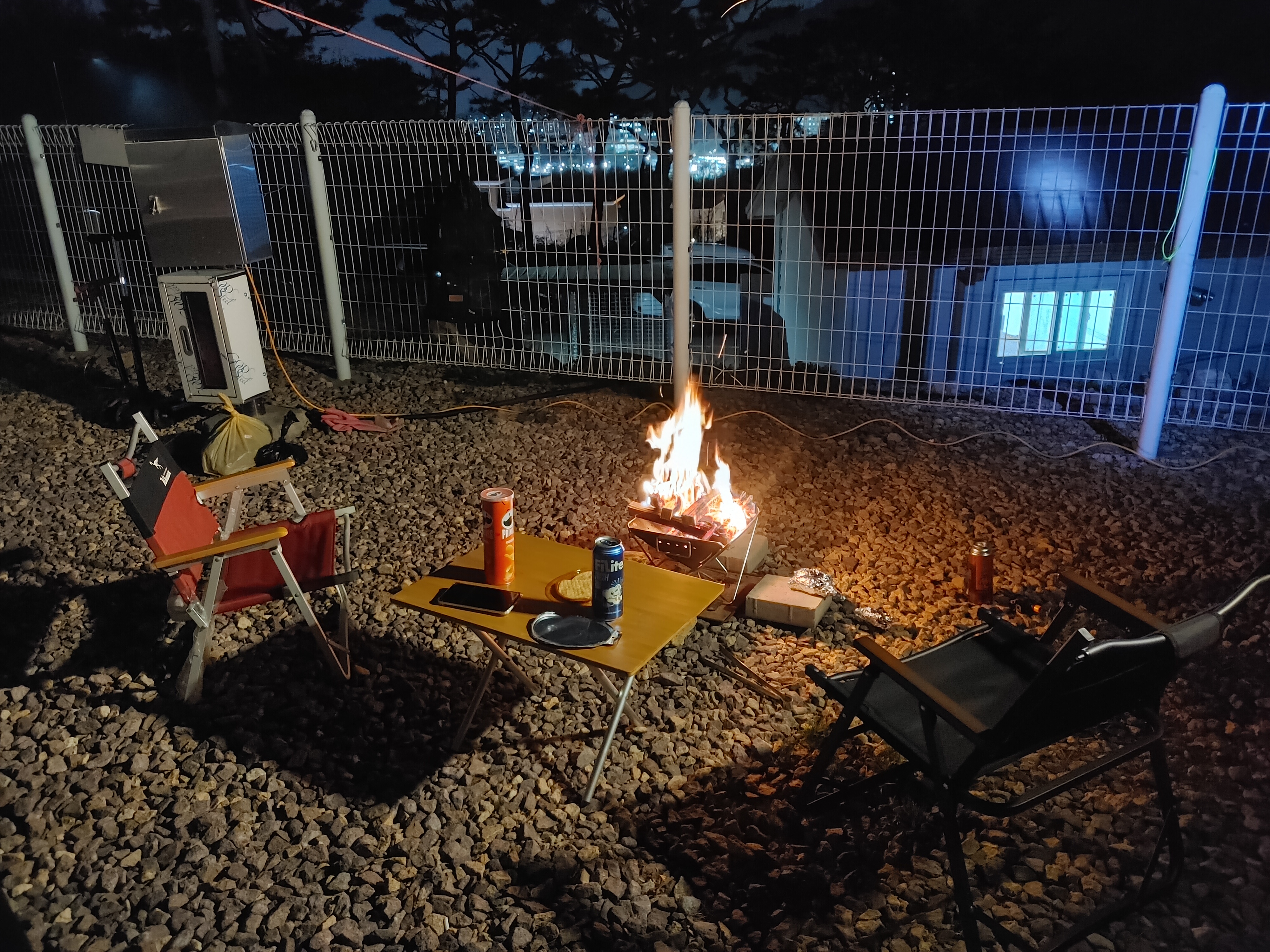 토요일 저녁에는 숯불에 불멍을 하려고 했는데, 바람이 너무 불어서 포기하고 그냥 고기를 구워 먹었네요..ㅠㅠ