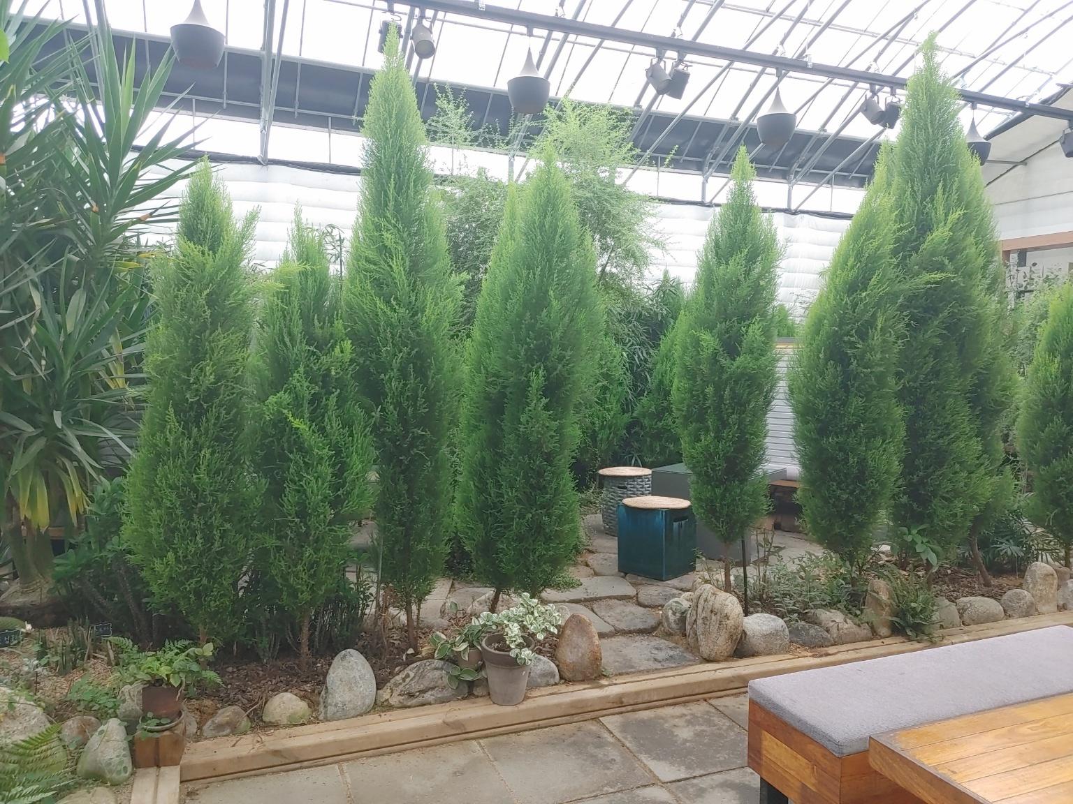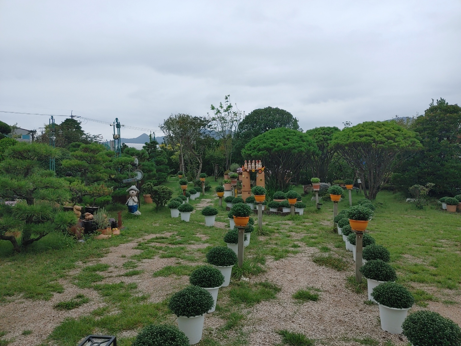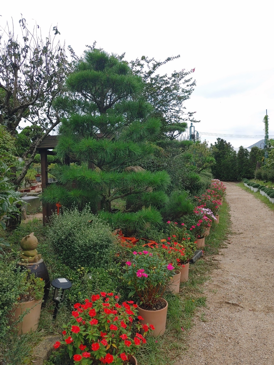 들어가는 입구부터 양옆으로 나무와 화분들이 있답니다. 아직 국화가 꽃이 피지 않아서 초록초록한 게 조금 아쉬웠어요.