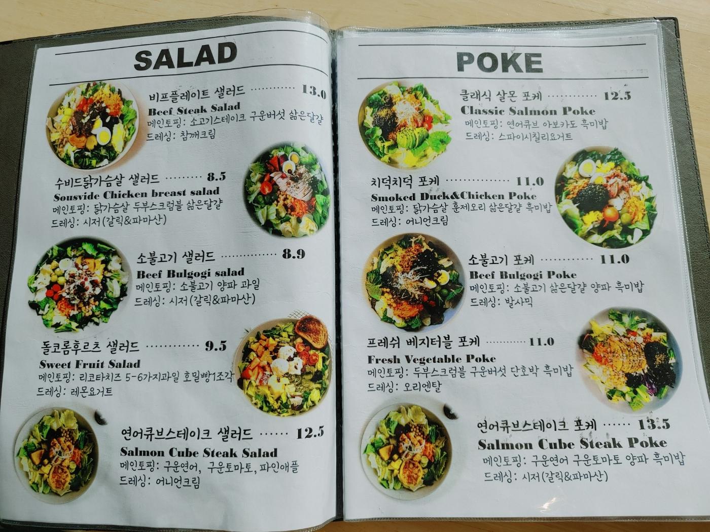 샐러드, 포케, 샌드위치, 그릭요구르트, 그리고 커피와 음료들이 있답니다.