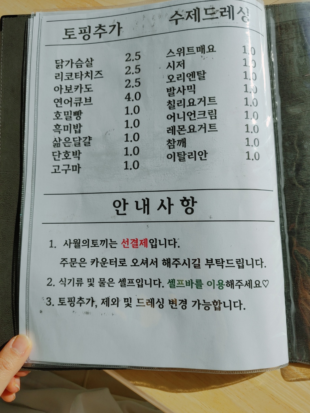 다녀오신 후기를 보니 샐러드 맛집이라고 하는데, 오늘따라 제 입맛에는 안 맞았어요. 다녀온 아는 동생은 샐러드를 맛있게 먹었다고 하더라고요.