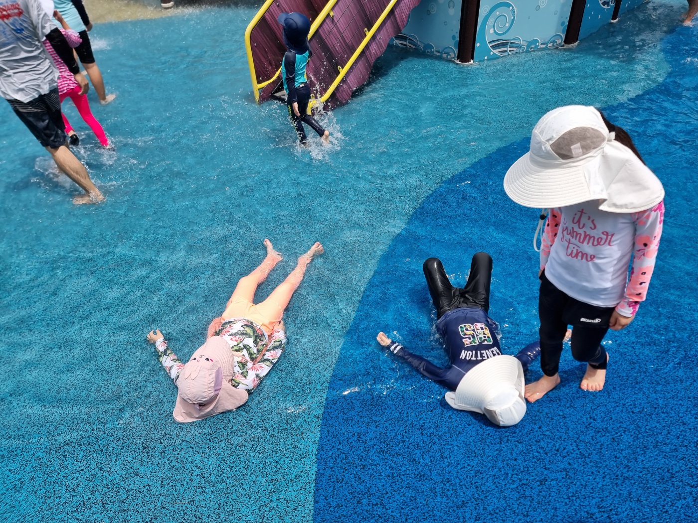 다른 물놀이터는 휴식시간에 물안에 못 들어가게 하는데, 솔마루물놀이터는 휴식시간에도 물안에서 놀아도 아무 말 안 하시더라고요. 휴식시간에도 아이들이 계속 물놀이를 한답니다.
