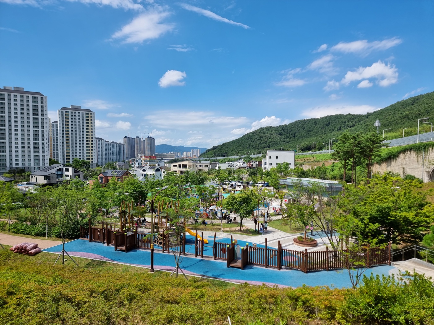 장유 솔마루공원은 물놀이터도 있지만 조금 위쪽에 어린이놀이터와 산책로도 있어요.