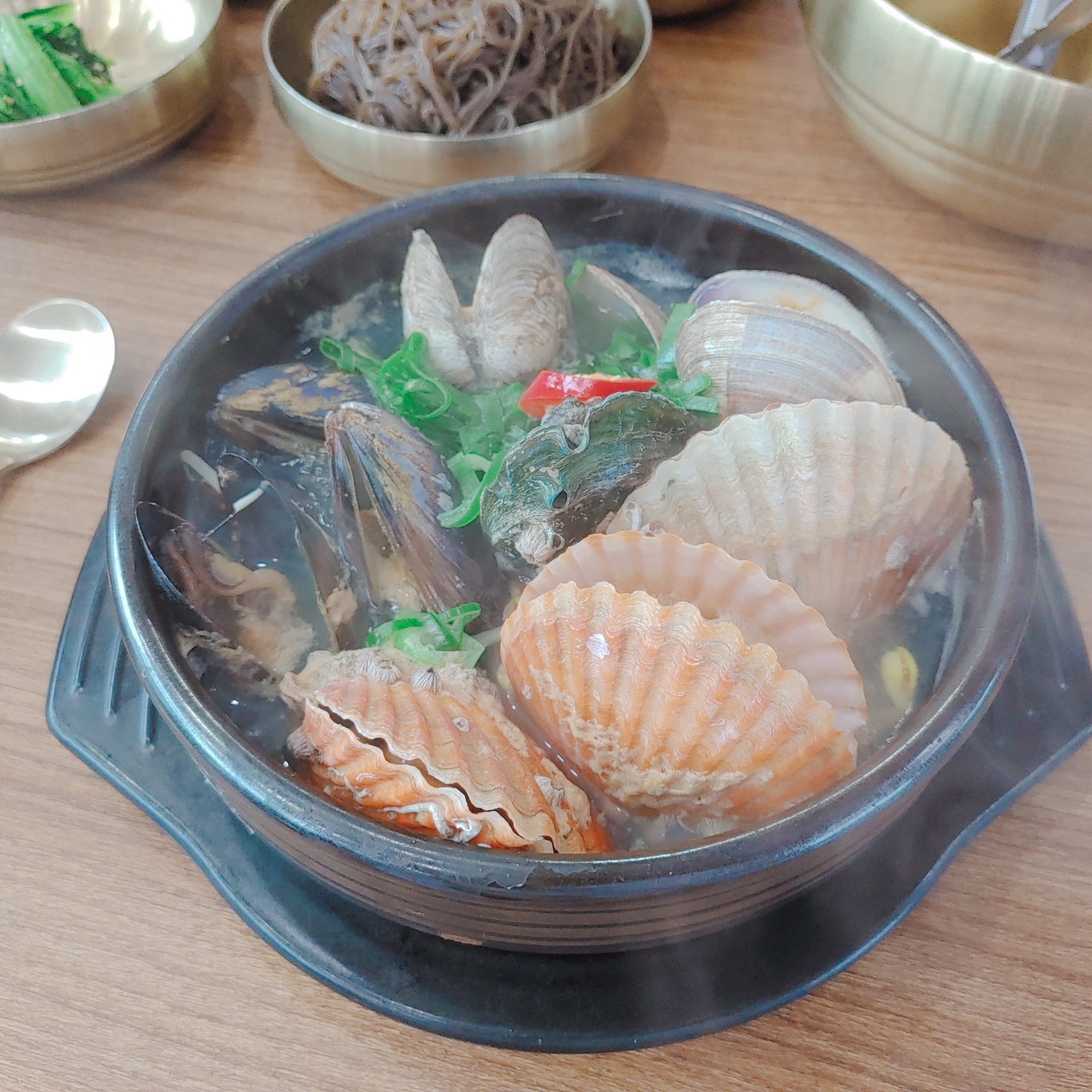 해장이 필요한 저희 신랑 픽!! 전복해물뚝배기입니다. 칼칼하니 속이 딱 풀리겠더라고요. 고추가 들어가서 살짝 맵기는 하답니다. 아이들이 먹을 것 같으면 고추는 별도로 달라고 하셔도 될 것 같아요. 맑은 국물의 뚝배기라서 아이들도 같이 먹으면 좋겠더라고요.