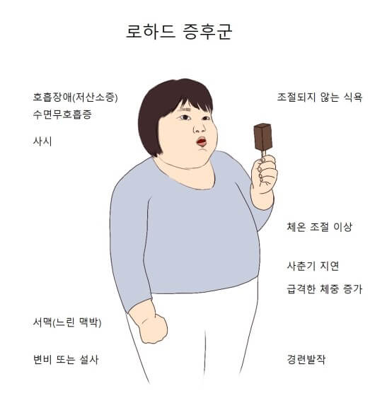 내분비기관을 조절하는 신경계에 이상이 생겨 발생하는 병으로, 주로 어린아이에게 발생하는 난치병이자 희귀질병의 일종이다. 체중 급증, 호흡곤란, 호르몬 결핍 등이 주증상이다.