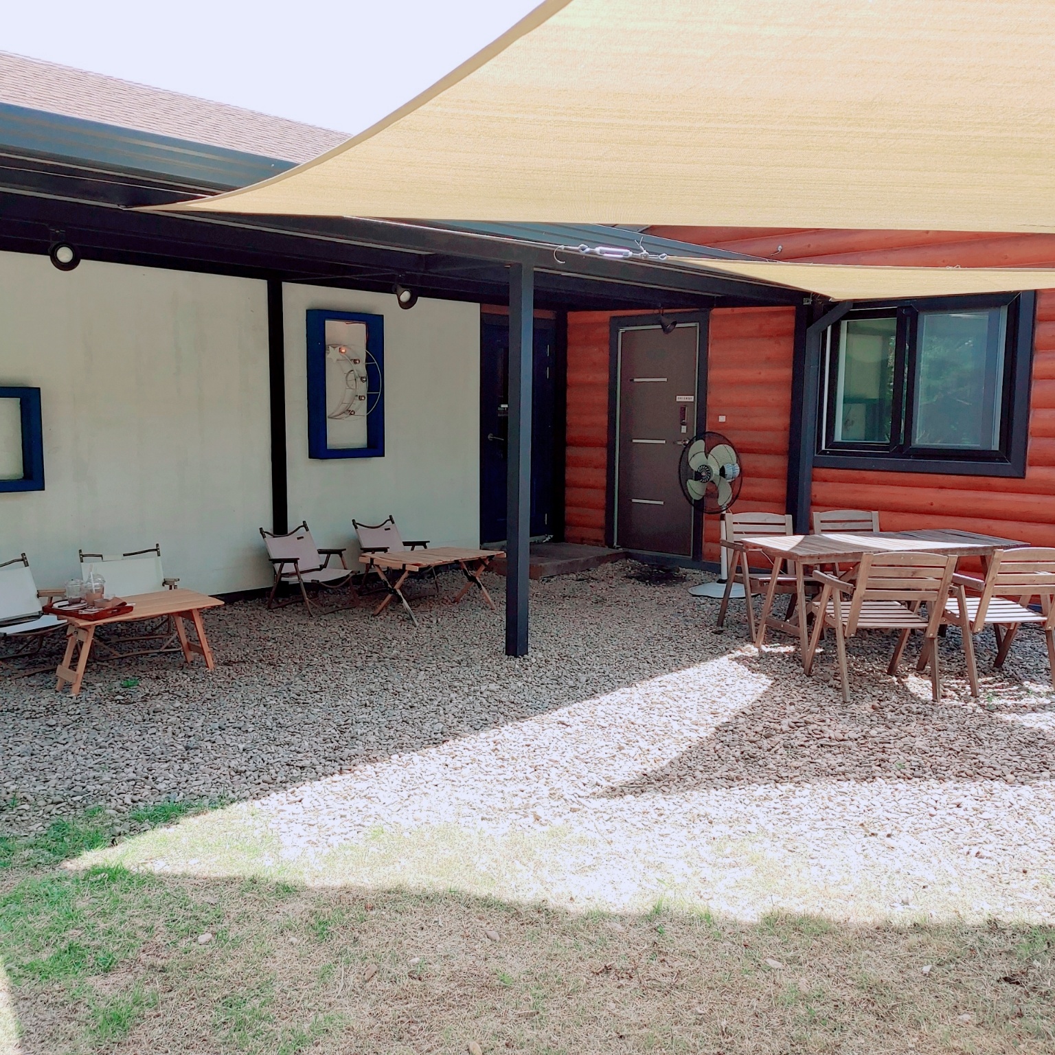 저희는 너무 더워서 야외에 앉았다가 컨테이너 안으로 들어왔답니다. 컨테이너 안에는 에어컨이 있어요!!