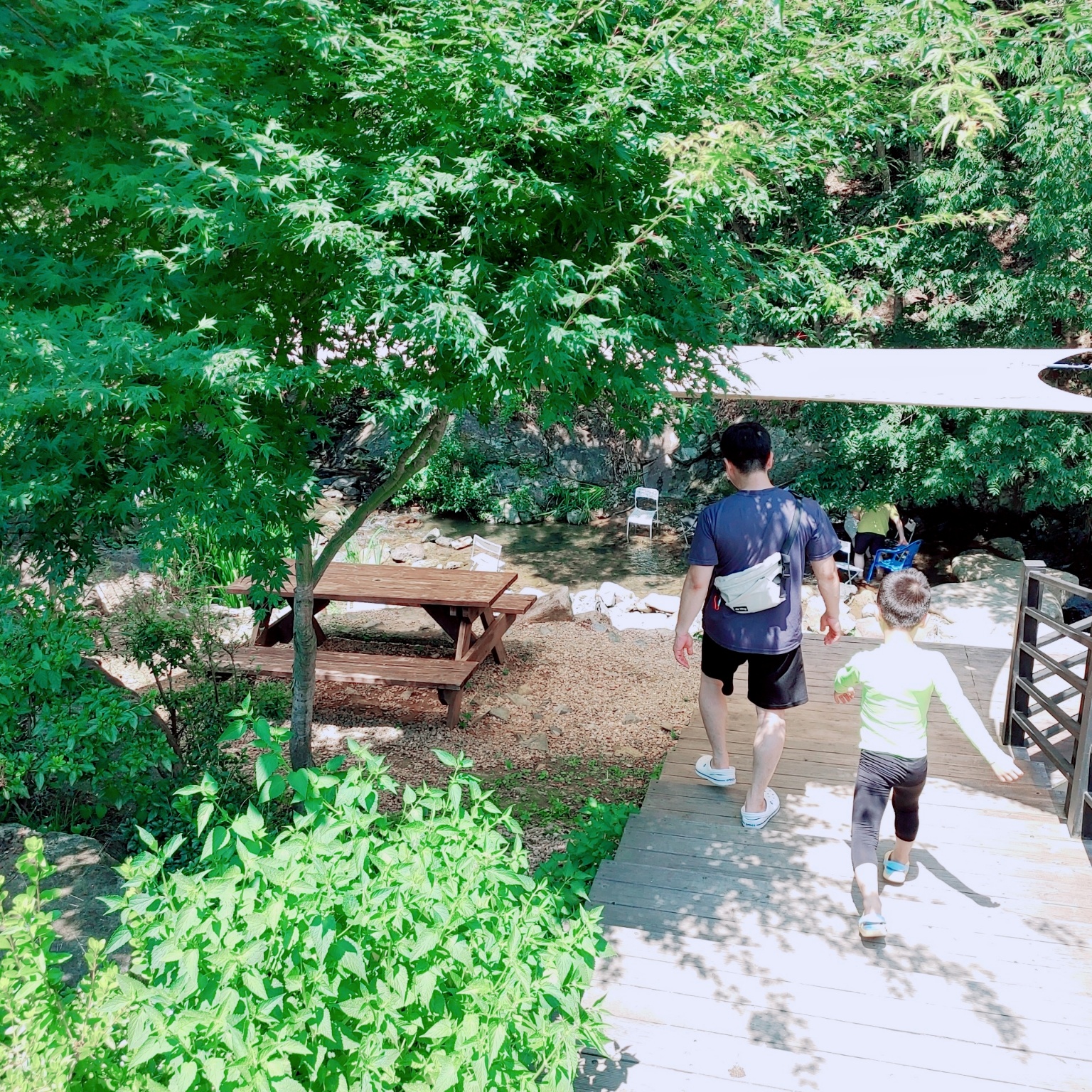 계곡에 발을 담그고 커피를 마실 수 있어요. 아이들은 여기서 물놀이도 하더라고요.^^