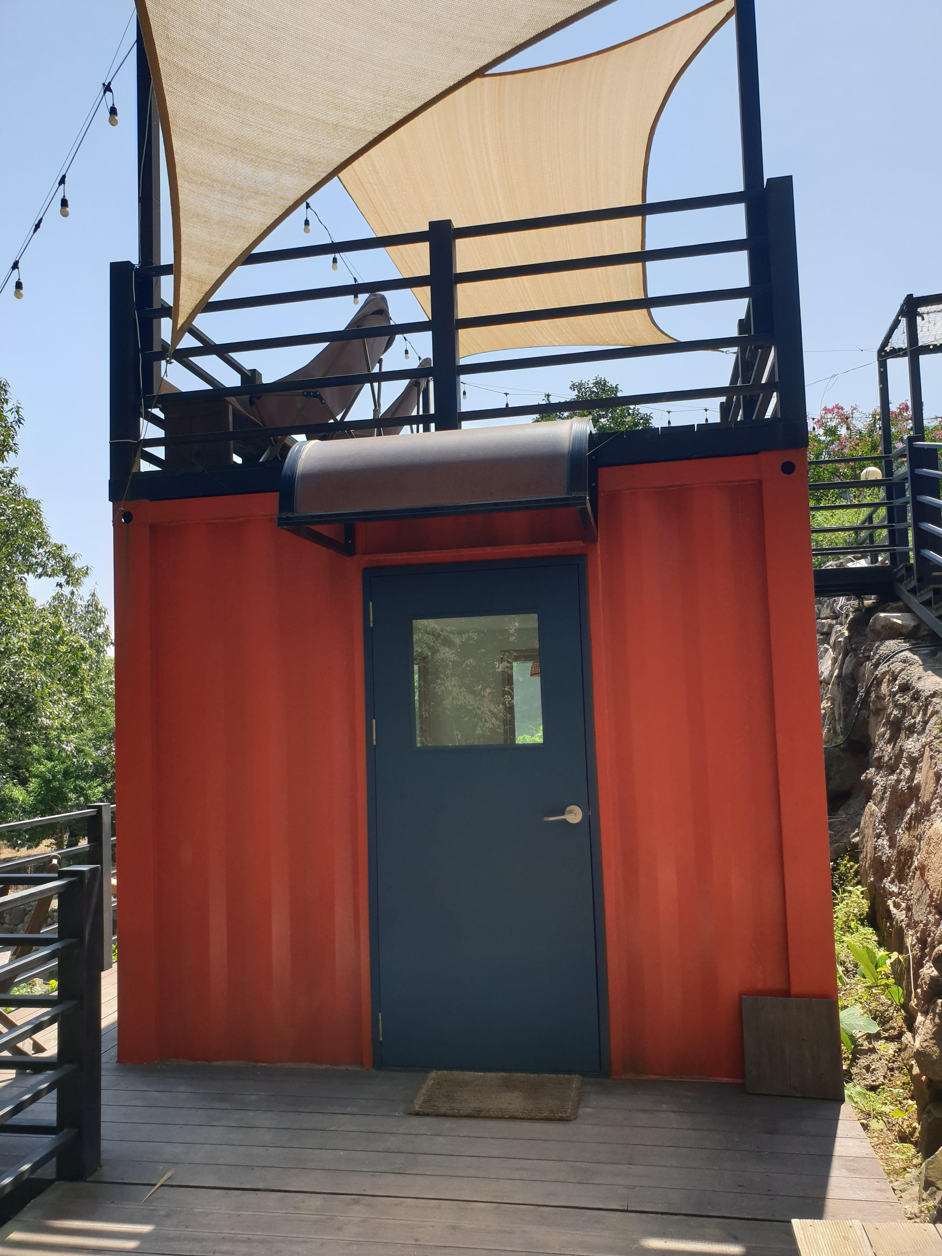 계곡 내려가는 곳에 컨테이너가 있답니다. 컨테이너 위쪽은 경치 바라보기가 좋고, 컨테이너 안쪽은 에어컨이 있어서 시원하게 경치바라보기가 좋아요^^