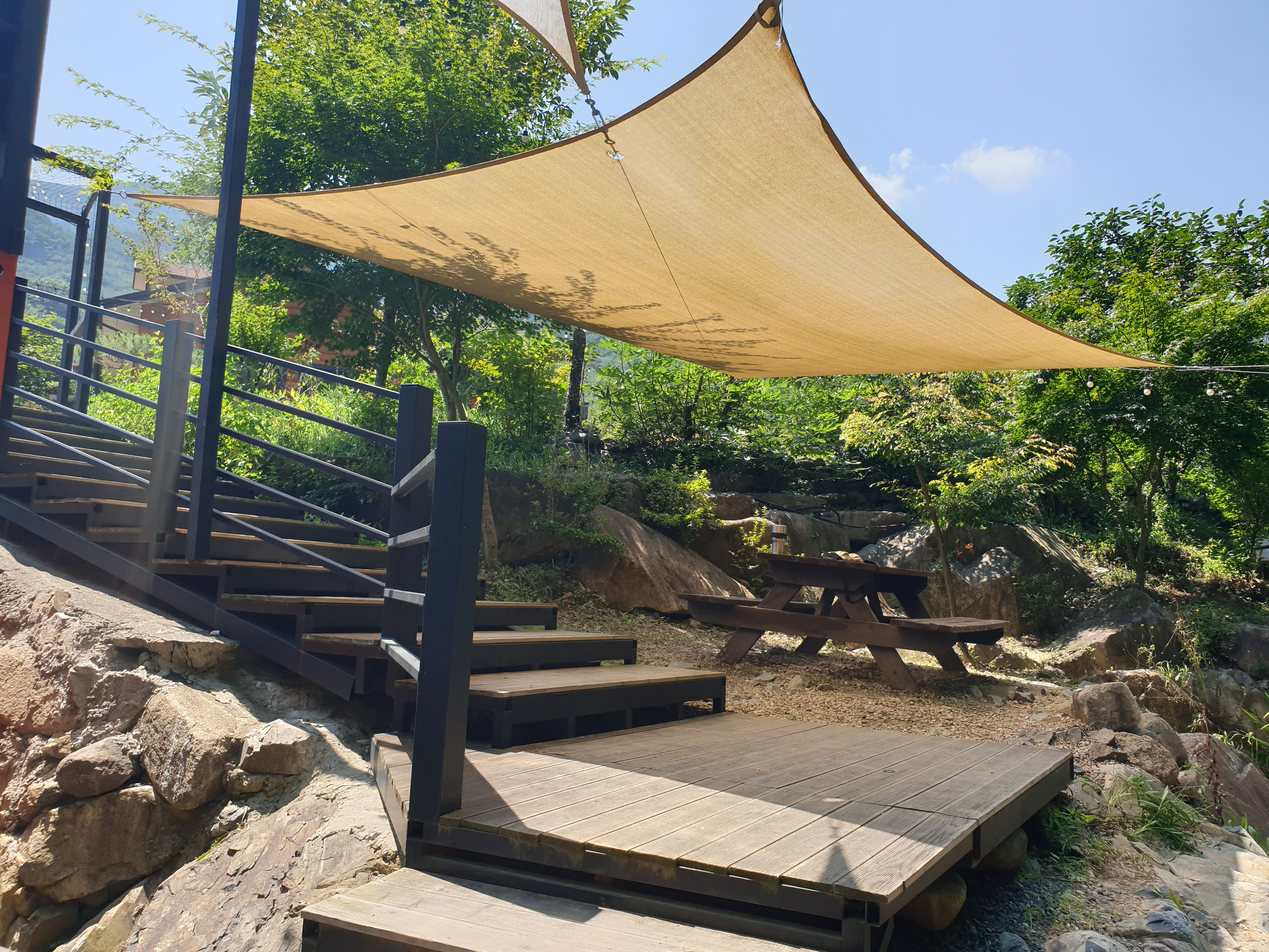 여기는 계곡 내려가는 길이랍니다. 계곡 쪽으로도 앉아있을 수 있는 공간이 있어요.
