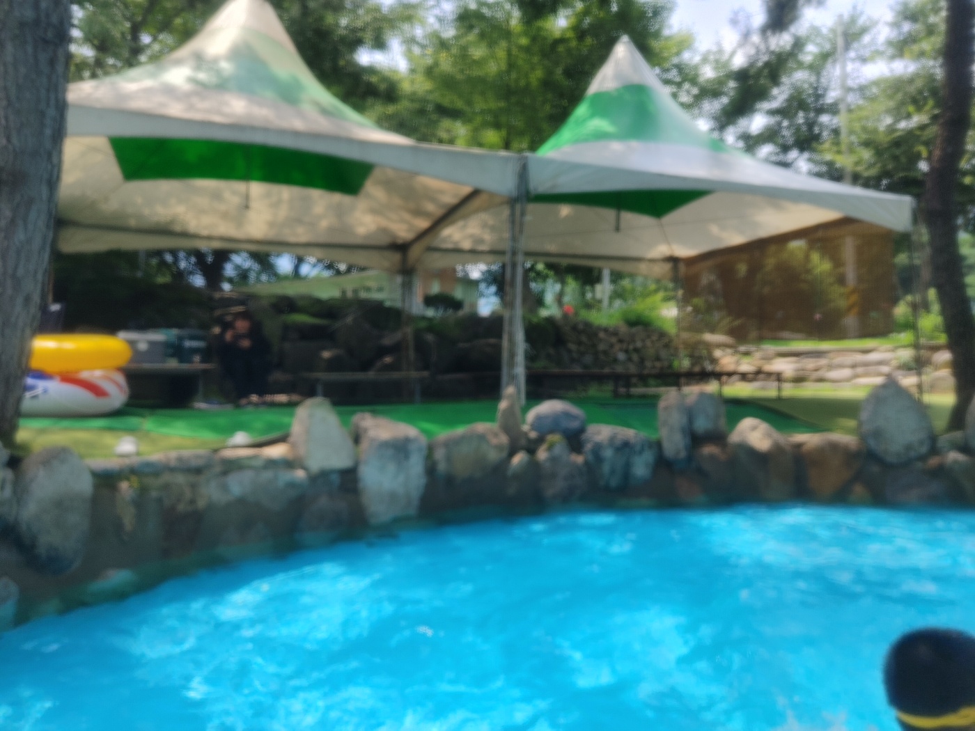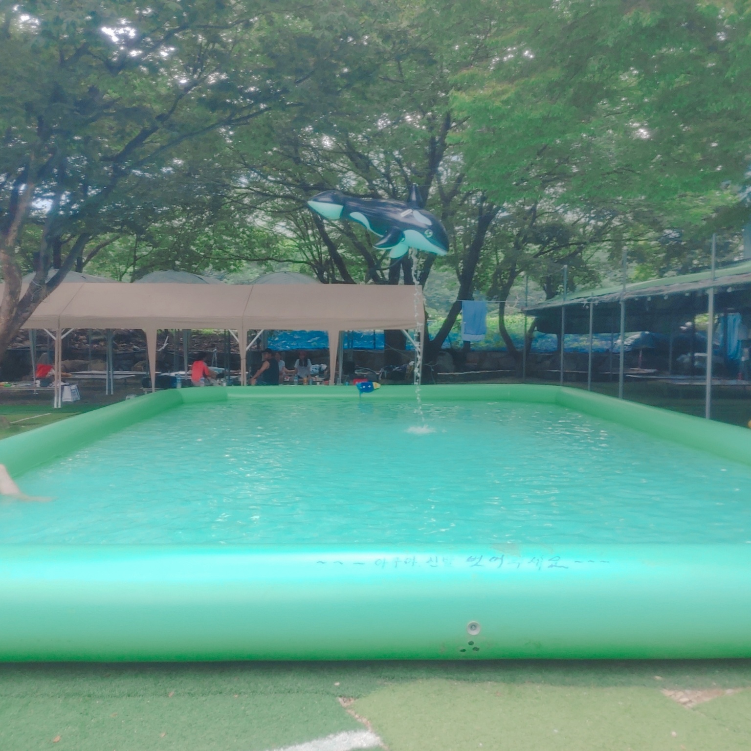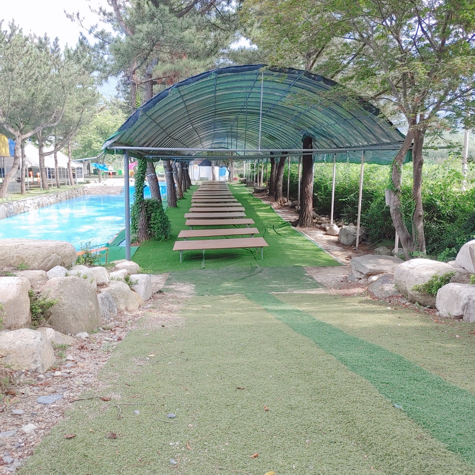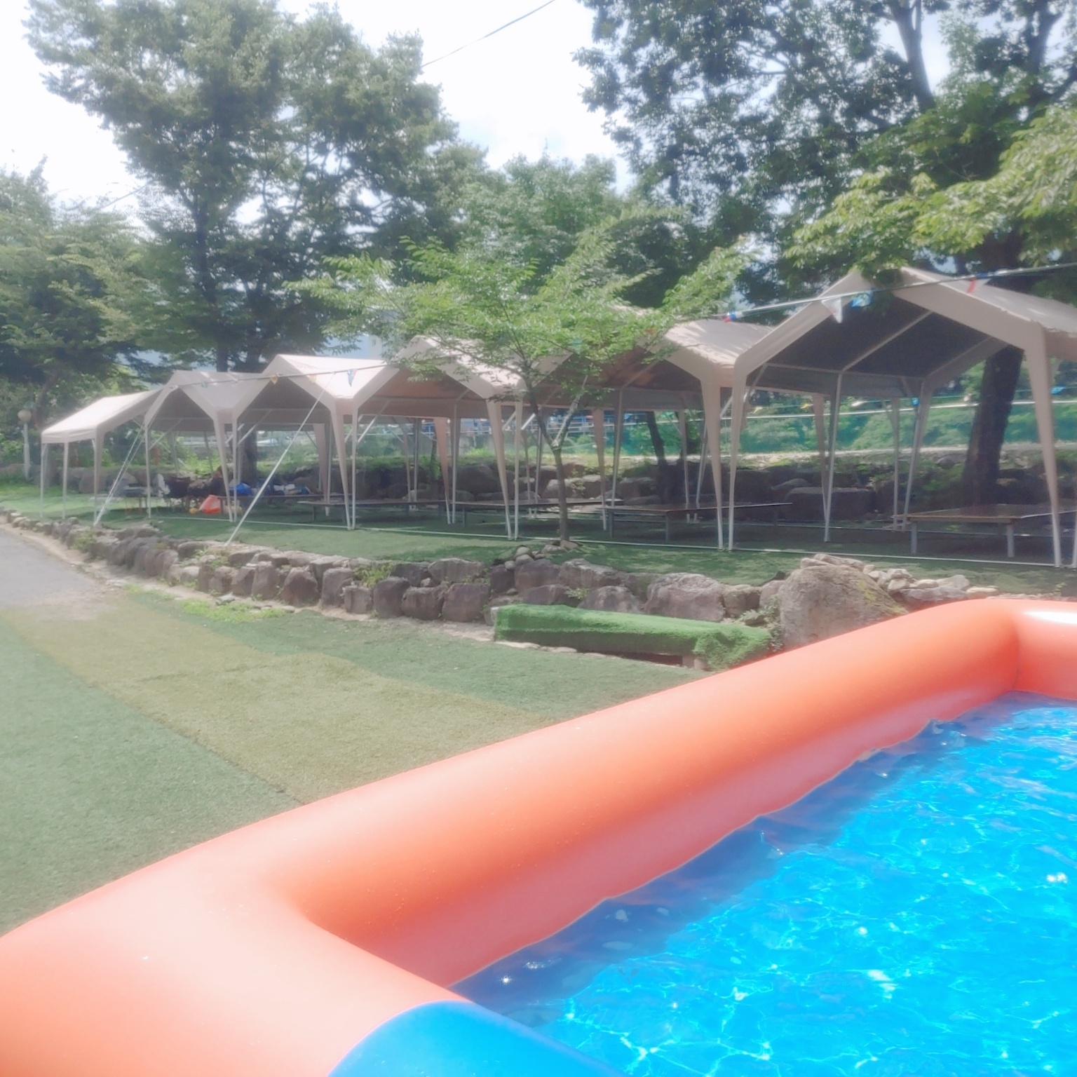 입구에 들어오면 폭포풀과 B사이트 평상이 보인답니다. 수영장 오른쪽 편에 있어요.