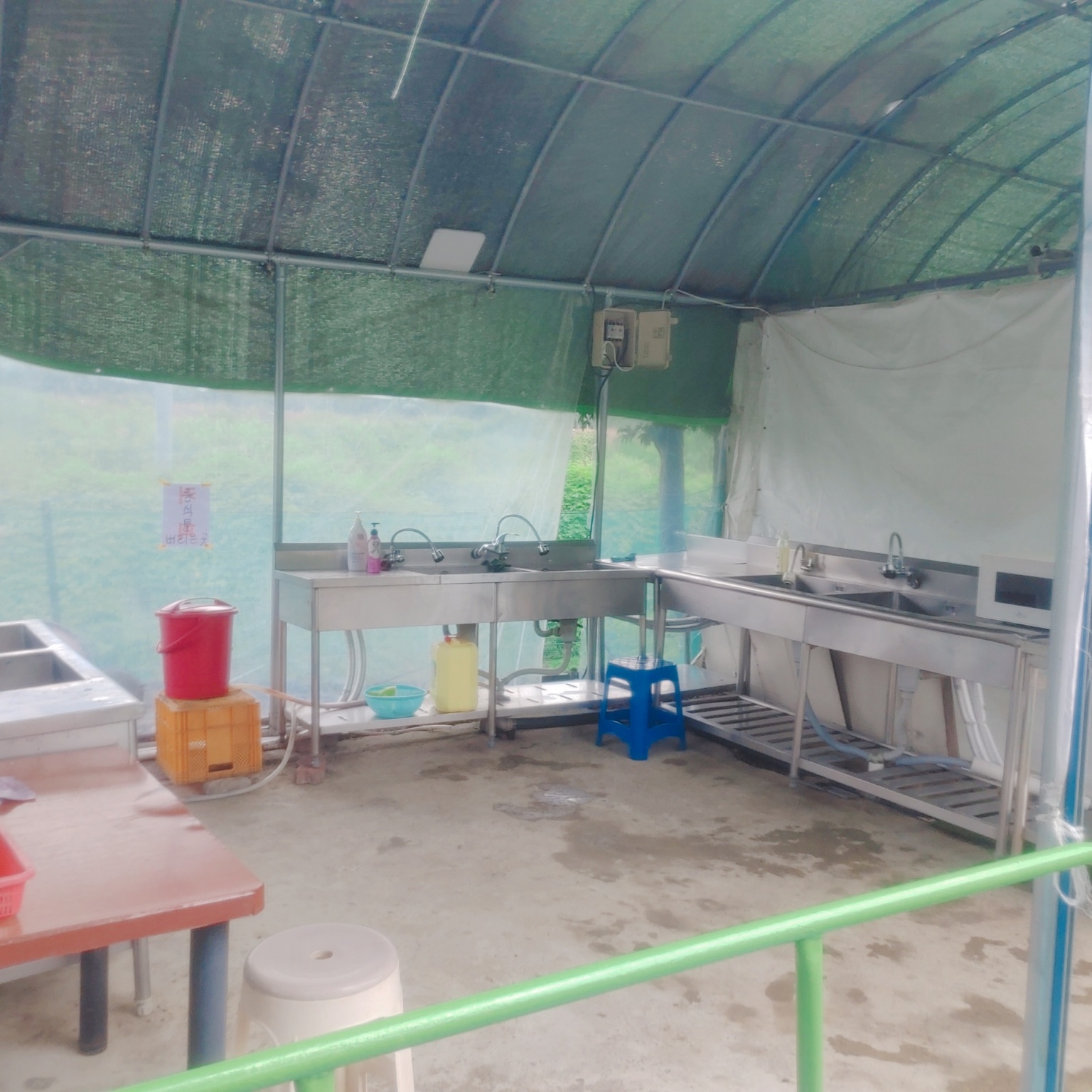 입구 쪽에는 미니풀장이 있었어요. 배치도를 보면 파고라하우스, 스크린하우스랍니다. 단체손님들이 이용할 수 있는 장소인거 같아요.