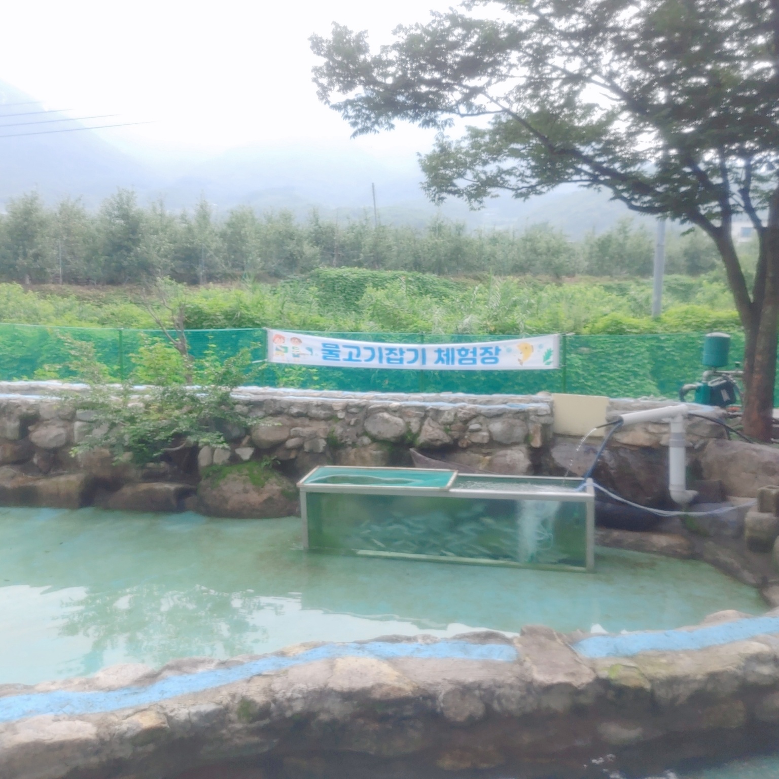 물고기 잡기 체험장은 유료로 운영되고 있어요. 보호자 1명과 아이 1명당 7천 원이고, 매점에서 티켓팅을 하면 된답니다. 하지만 하루에 1번 은어 잡기 체험을 무료로 할 수 있어요!!