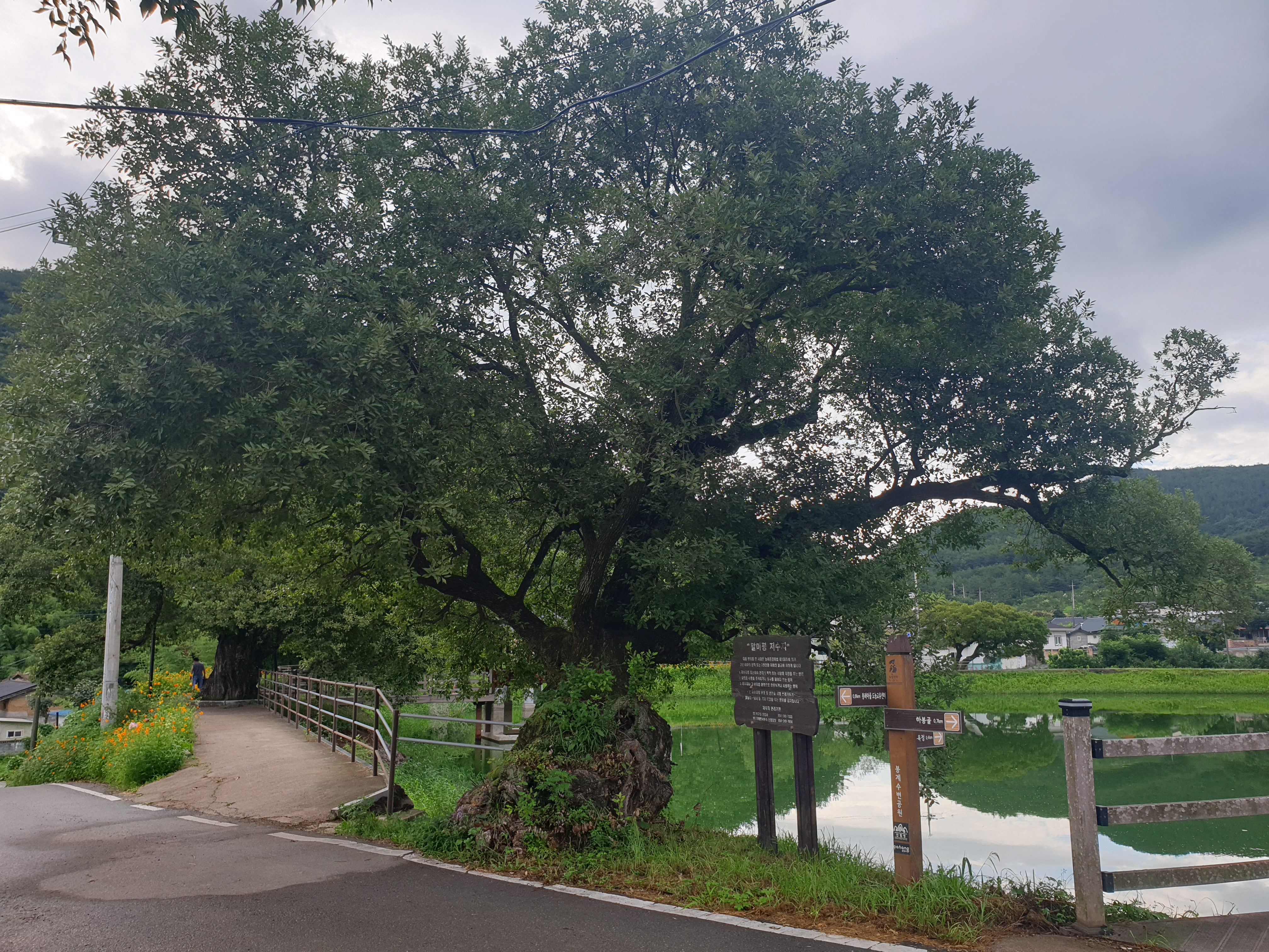 바로 옆에 300년 된 나무와 저수지가 있더라고요~