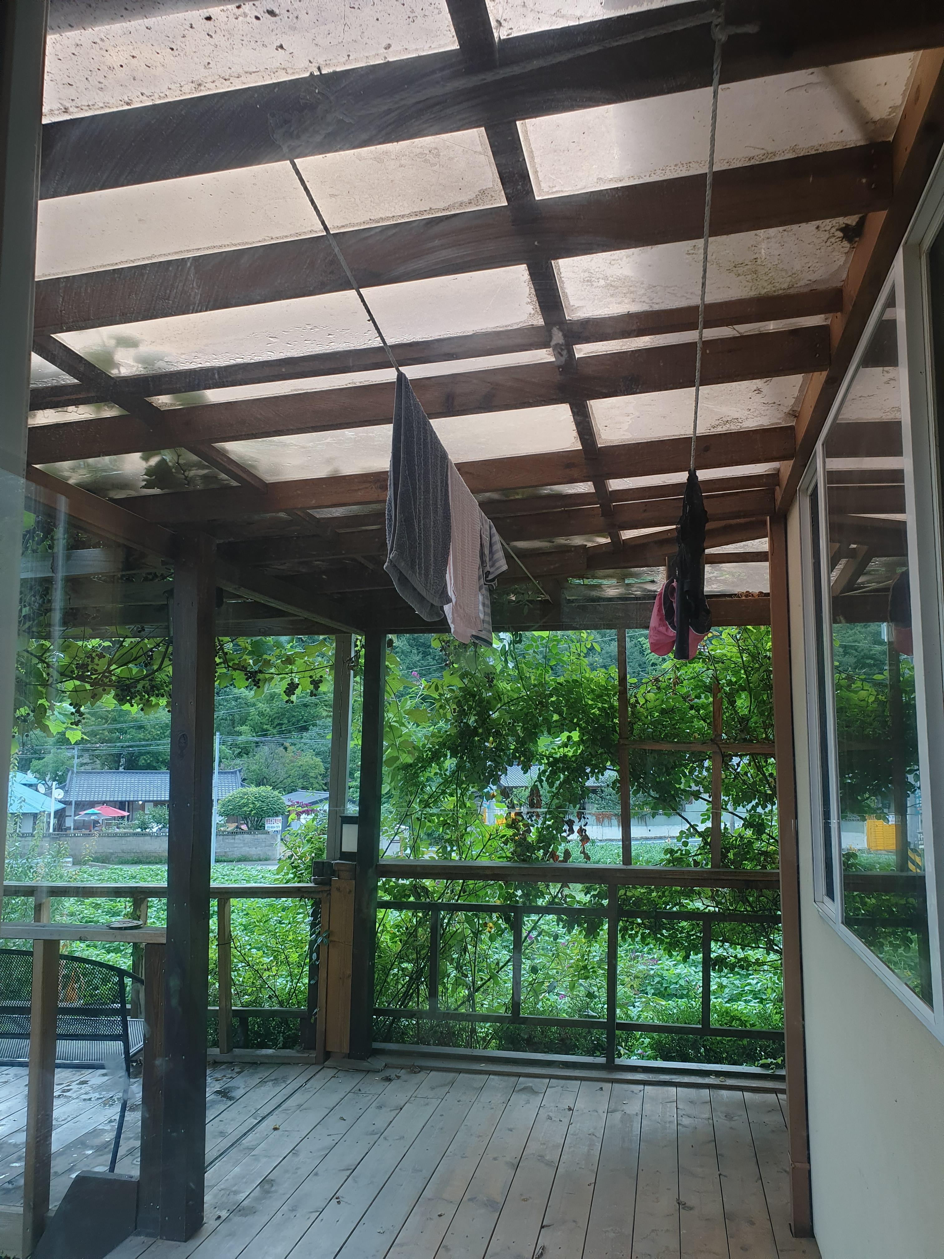 뒷마당 쪽으로는 비를 맞지 않게 되어있고 한쪽켠으로