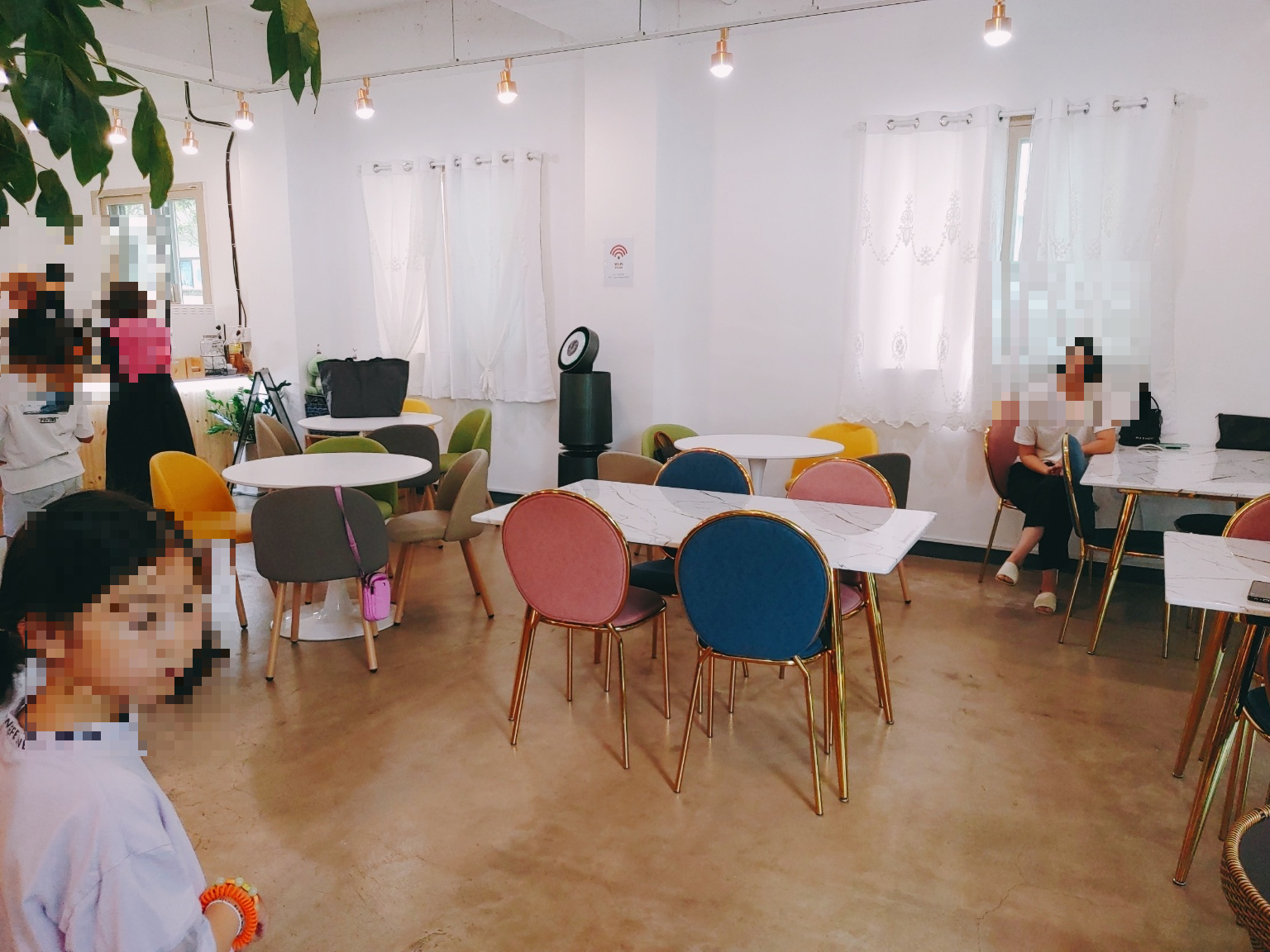 게코다방 안에는 4인용 테이블이 6개 2-3인용 테이블이 1개 있답니다. 총 7개 테이블이 있답니다. 테이블 수에 맞춰서 손님을 받고 뒤에 대기가 걸려있는 사람들은 손님이 나가면 순서대로 들어올 수 있어요. 카페에서 머물 수 있는 시간제한은 없어요. 그래서 대기시간도 정확하지 않더라고요. 11시에 사람들이 들어가면 뒤에 대기시간은 기본 1시간 30분 이상이겠더라고요.