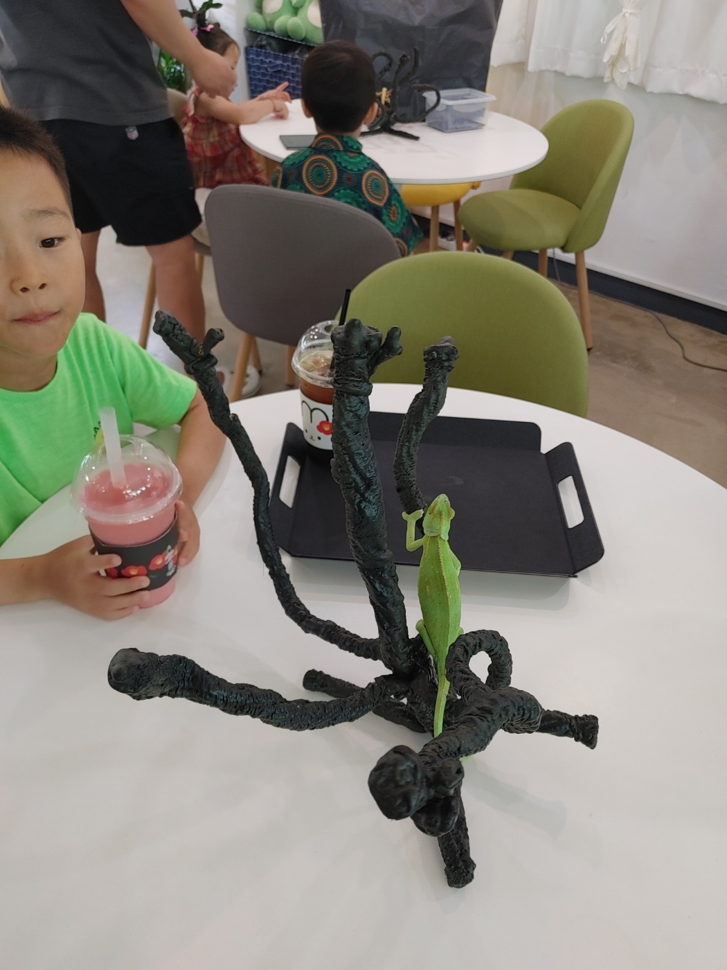 게코다방은 따로 입장료가 없는 대신 아이들까지 1인 1 메뉴로 주문해야 한답니다. 커피, 스무디, 티 종류와 케이크종류와 병음료도 있답니다. 음료를 주문하고 나니 아이들은 한자리에 앉아서 체험을 할 수 있도록 해주었어요.