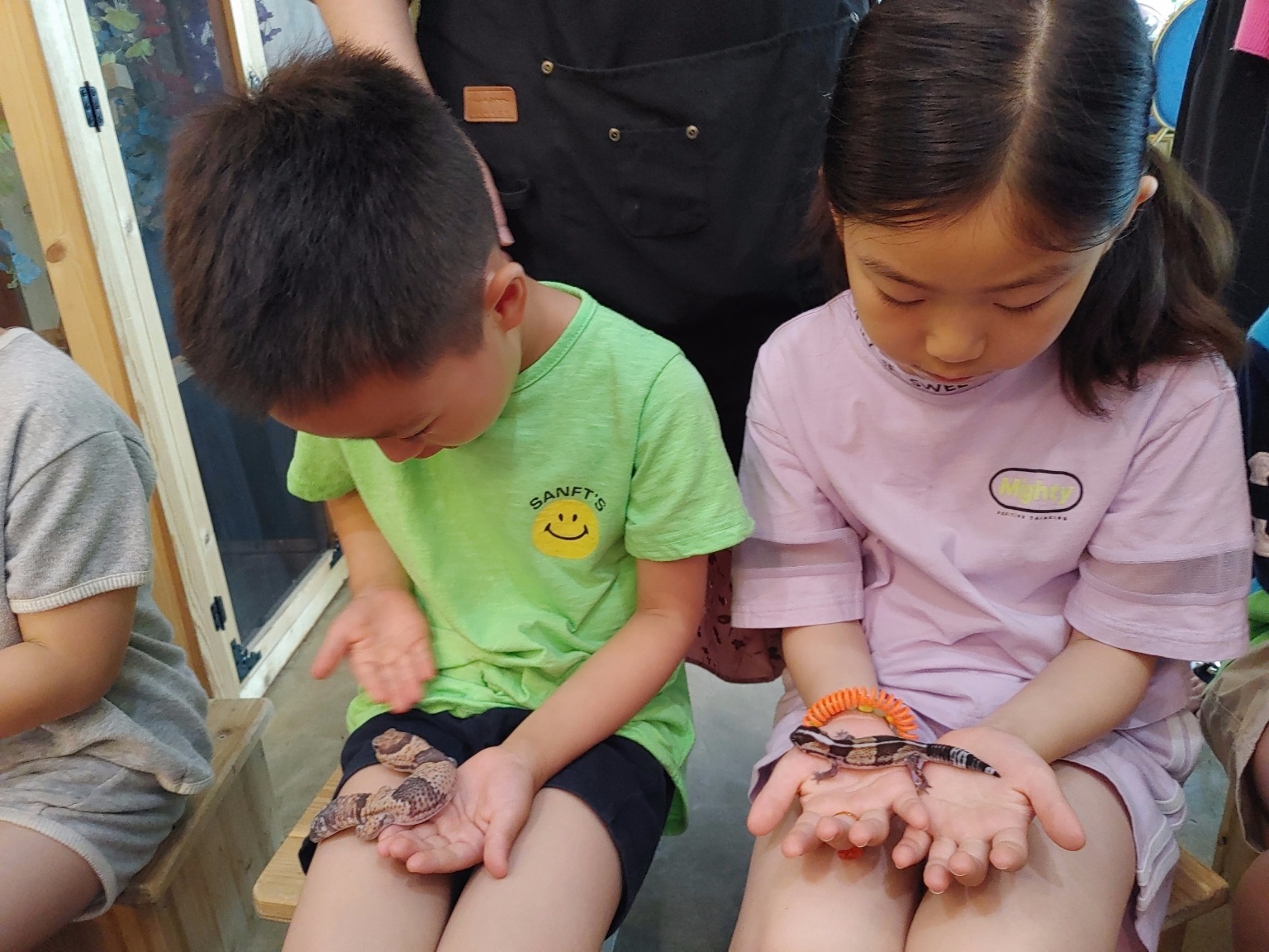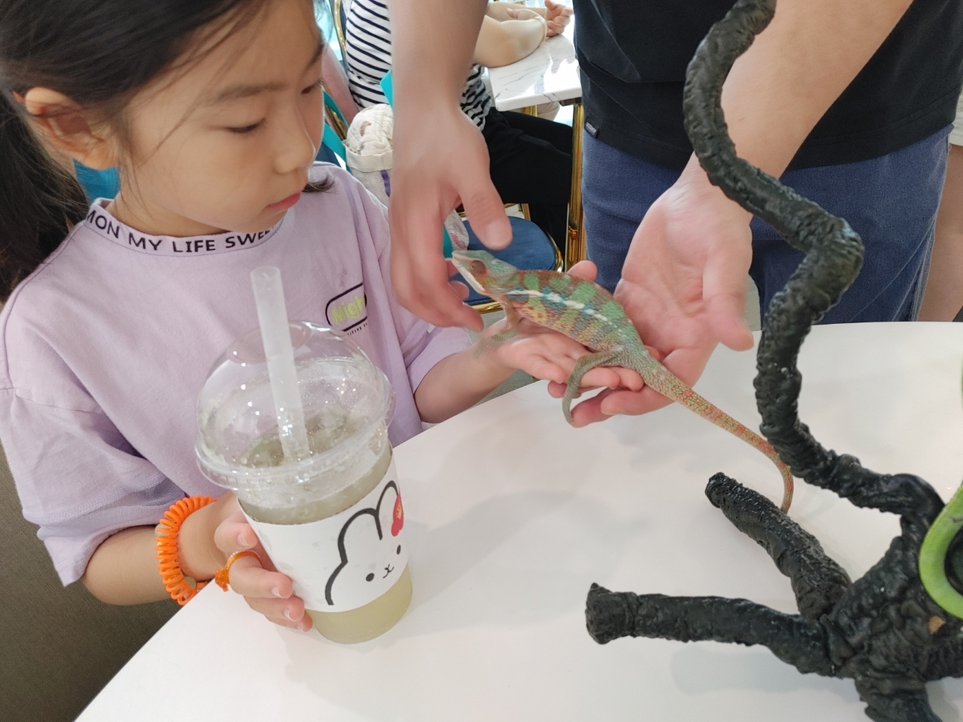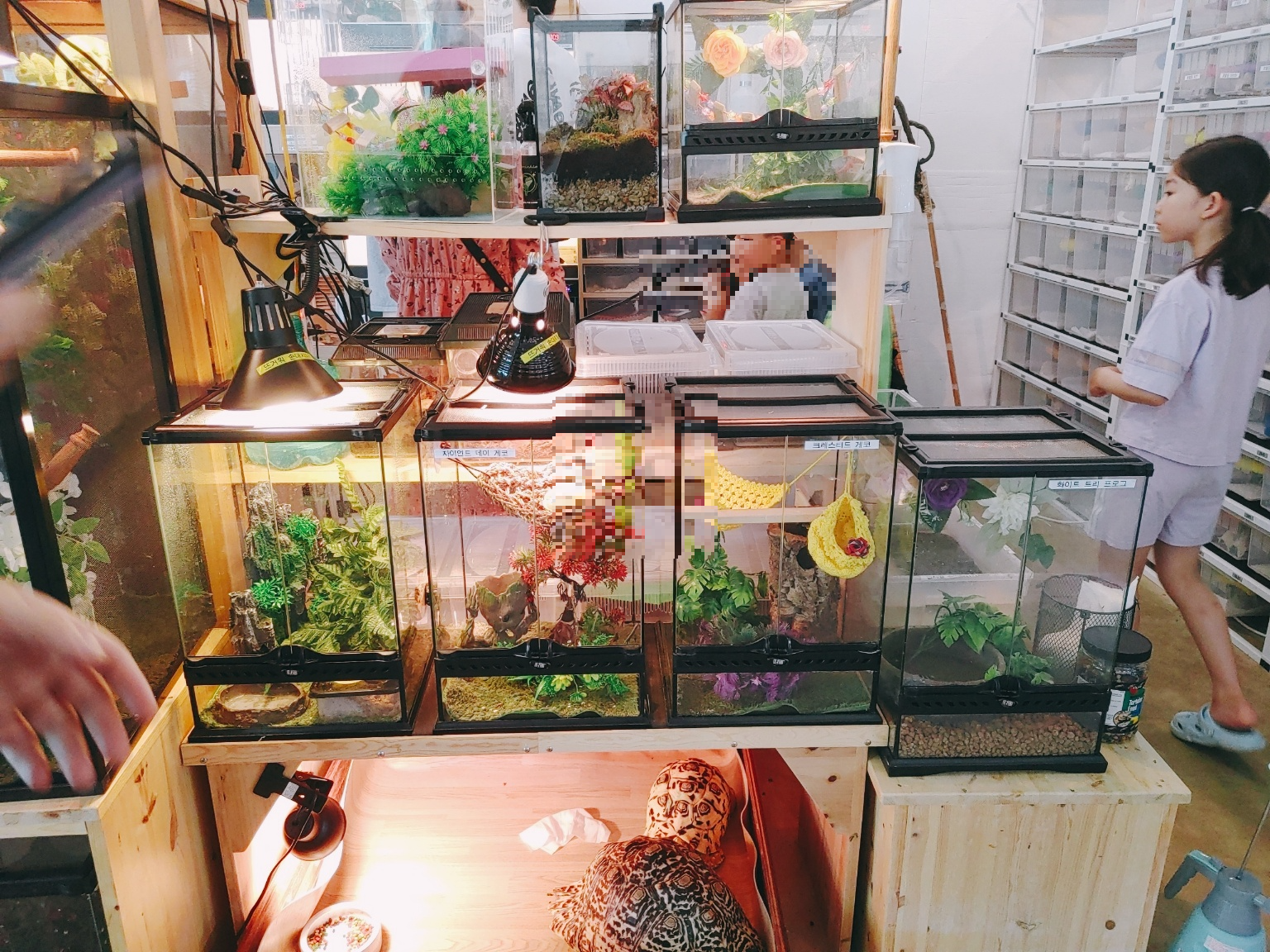 아래 있는 카멜레온은 한쌍에 100만 원이 넘는 녀석들이라고 하더라고요. 저희 아이들이 이 녀석들이 맘에 든다고 하니 너무 비싼 애들이라서 체험은 힘들다고 그래도 잠시 만져보는 건 해주시더라고요.