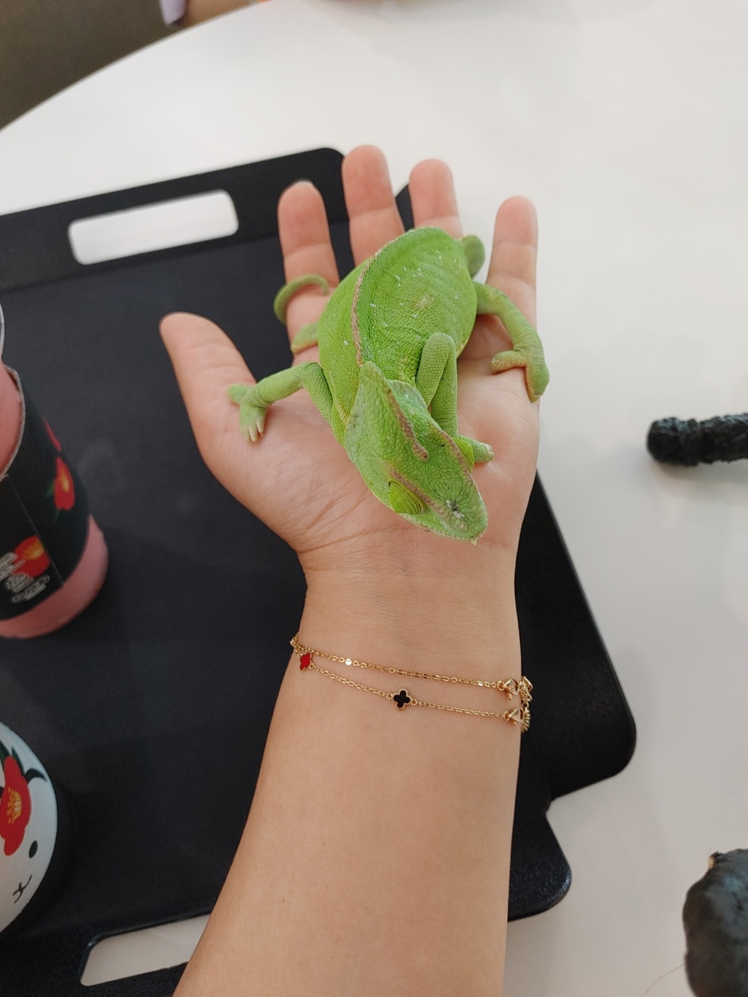 카멜레온도 있답니다. 나무에서 사는 파충류들은 발톱이 날카로워서 조금 아파요. 카멜레온 발이 너무 귀엽더라고요.^^
