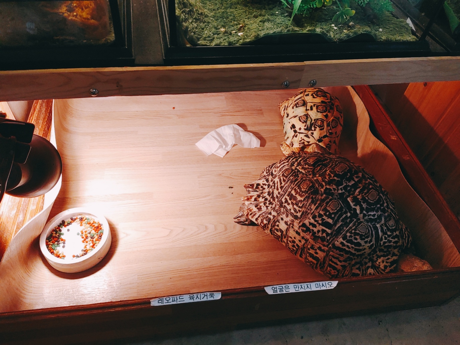 테이블 맞은편에는 도마뱀, 뱀 그리고 거북이 등 파충류들이 있답니다.