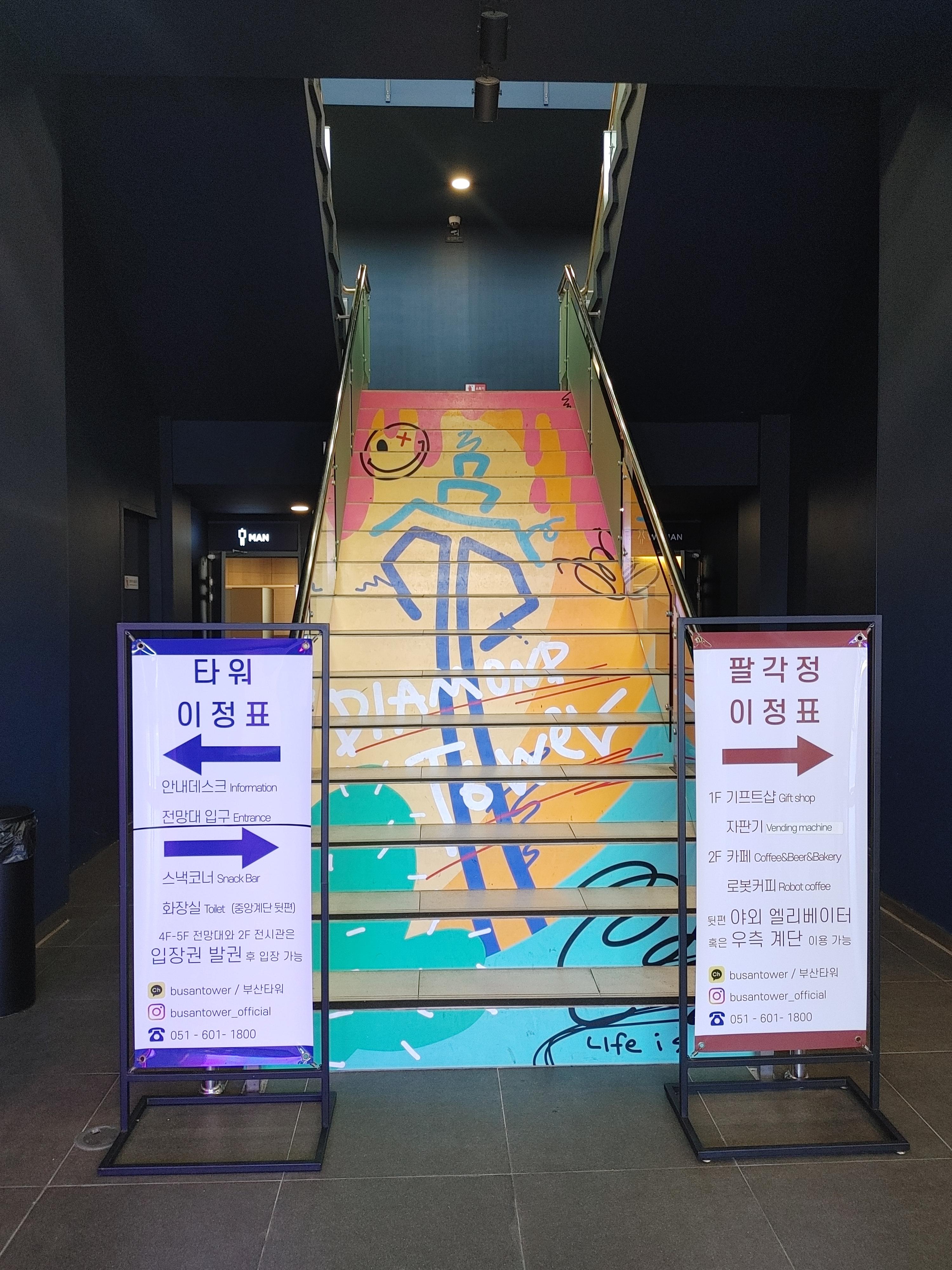 저녁에 부산 타워를 방문하면 다이아몬드 불꽃맵핑쇼를 볼 수 있다고 해요. 저희는 시간이 너무 많이 남아서 그 시간까지는 기다리기가 힘들었답니다. ㅠㅠ다녀오신 분들 보니 제법 볼만하겠더라고요. 저녁까지 먹고 시간 맞춰서 오면 좋을듯해요.