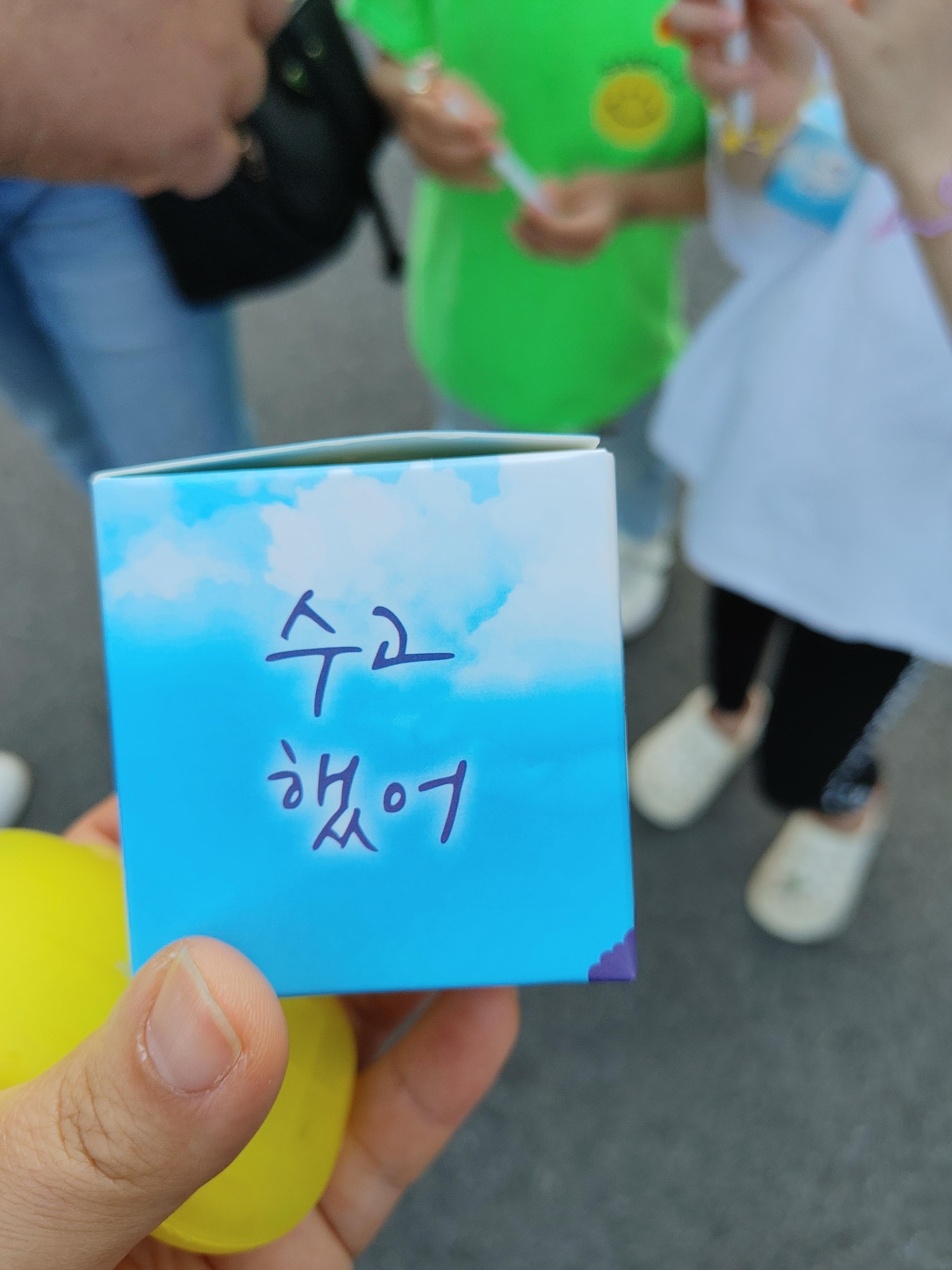 3가지가 교환이 가능해요. 이렇게 인원수대로 뽑을 수 있어요. 저희는 5명이 가서 5번 뽑기를 할 수 있었답니다. 종이비투, 변색 소주잔, 아이아몬드 볼펜 3가지를 뽑기 할 수 있어요.