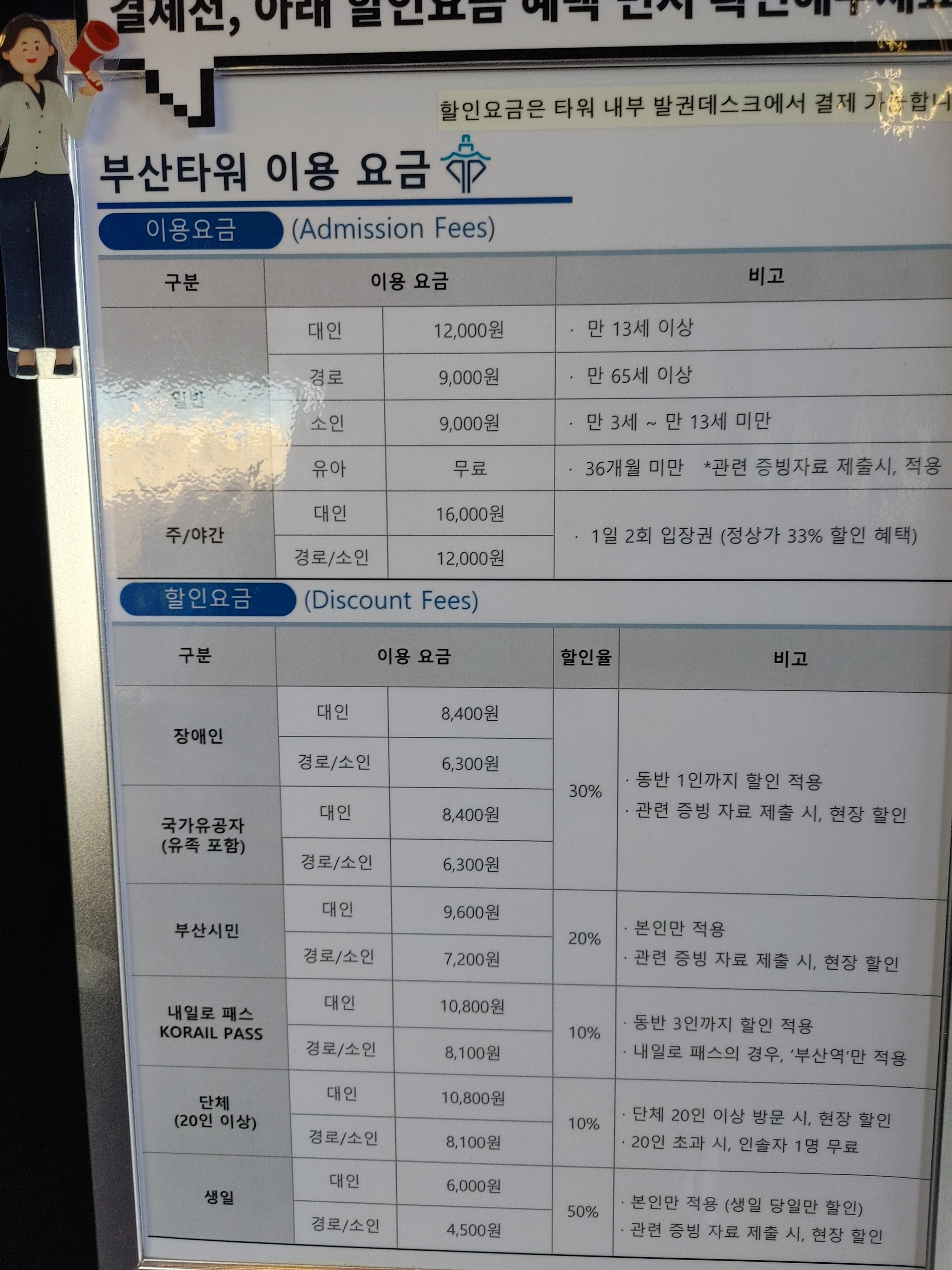 2. 부산시민이라면 신분증확인후 타워 내 발권데스크에서 20% 현장 할인이 가능하답니다.