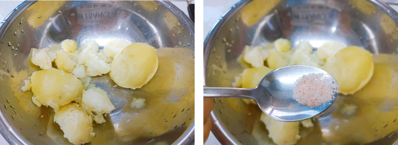 2. 껍질을 벗긴 감자에 소금 1/3T를 넣어주세요.