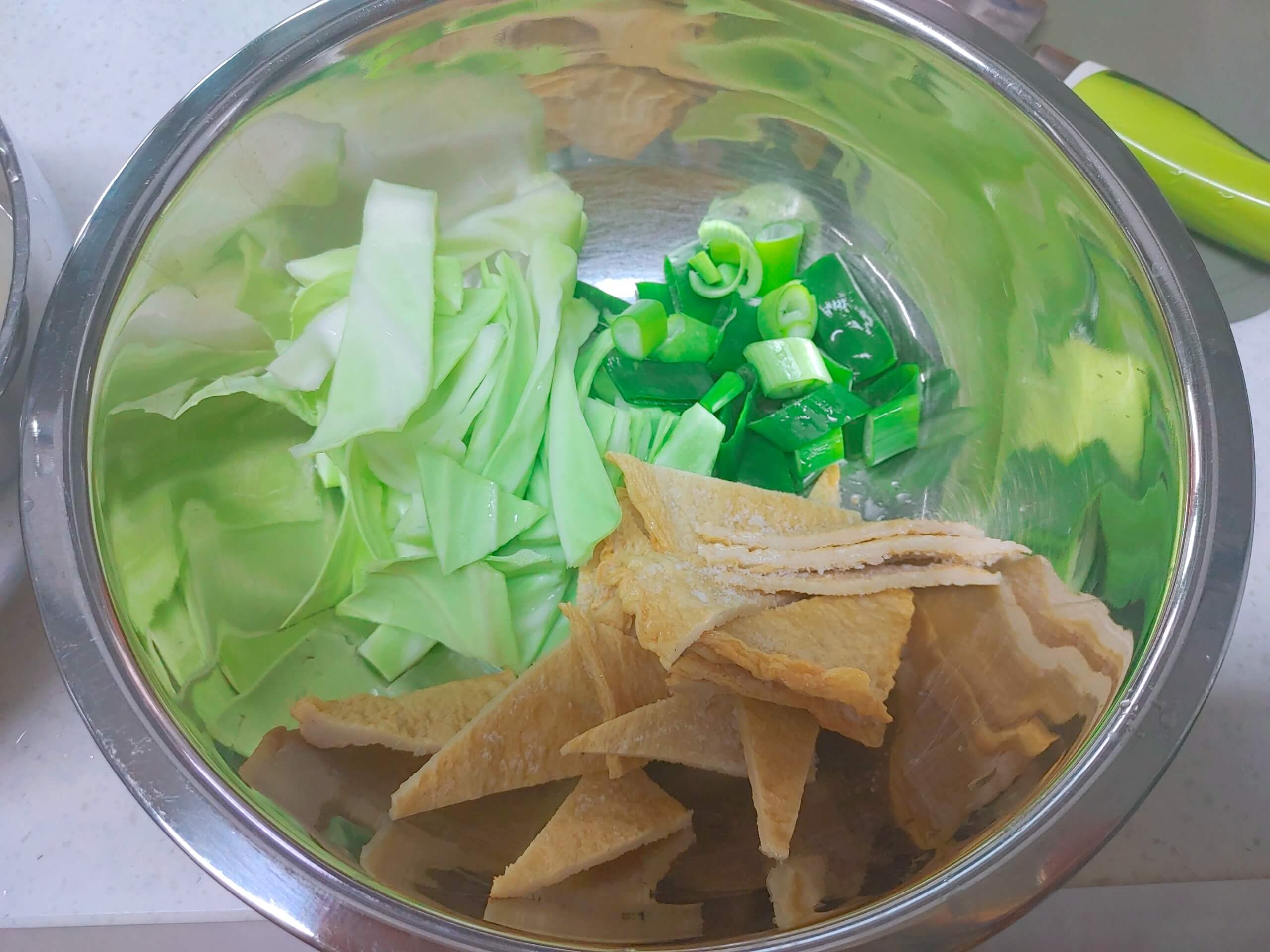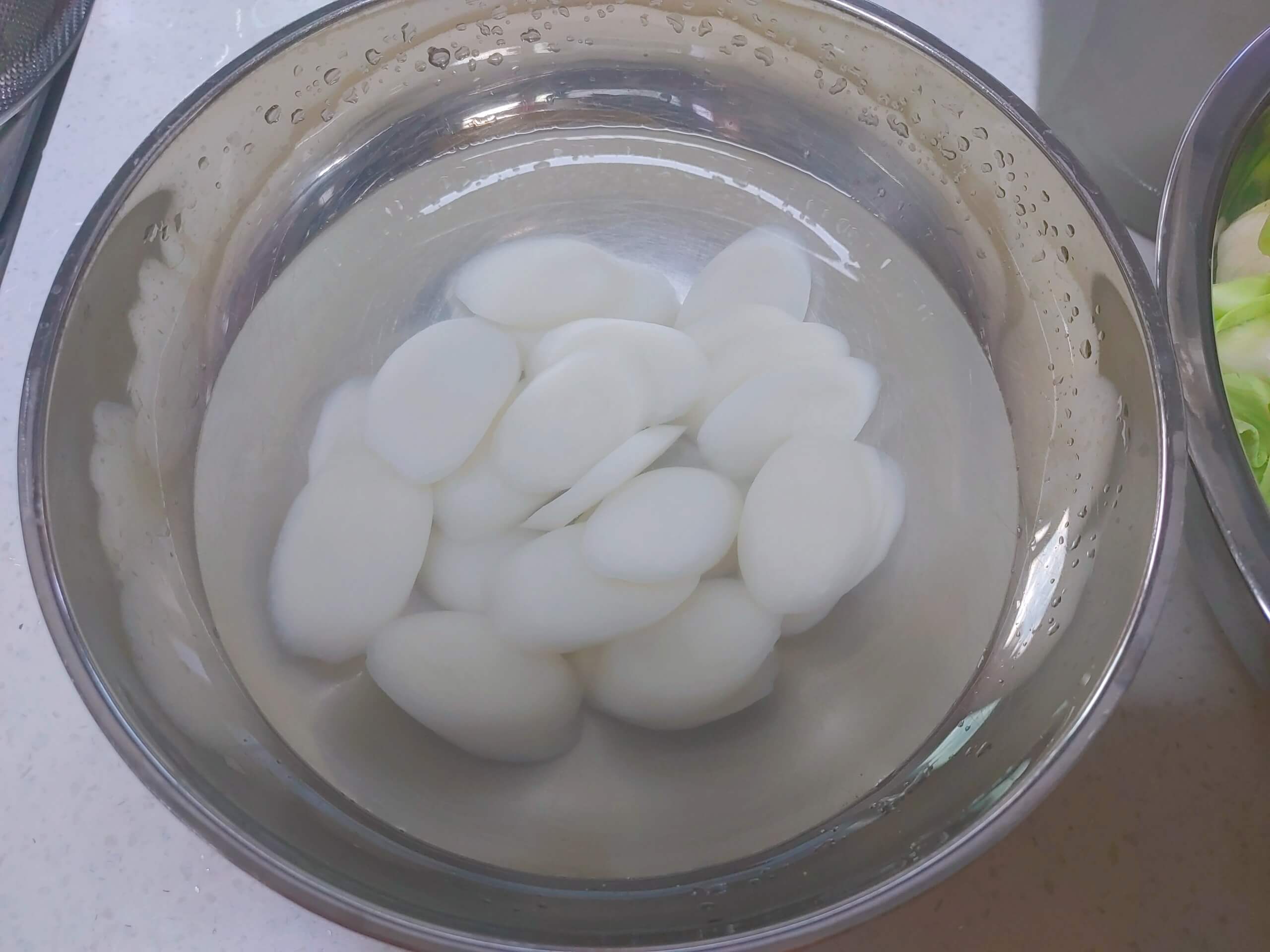 2. 육수를 내는 동안 떡은 물에 불려주고, 야채는 썰어주세요.