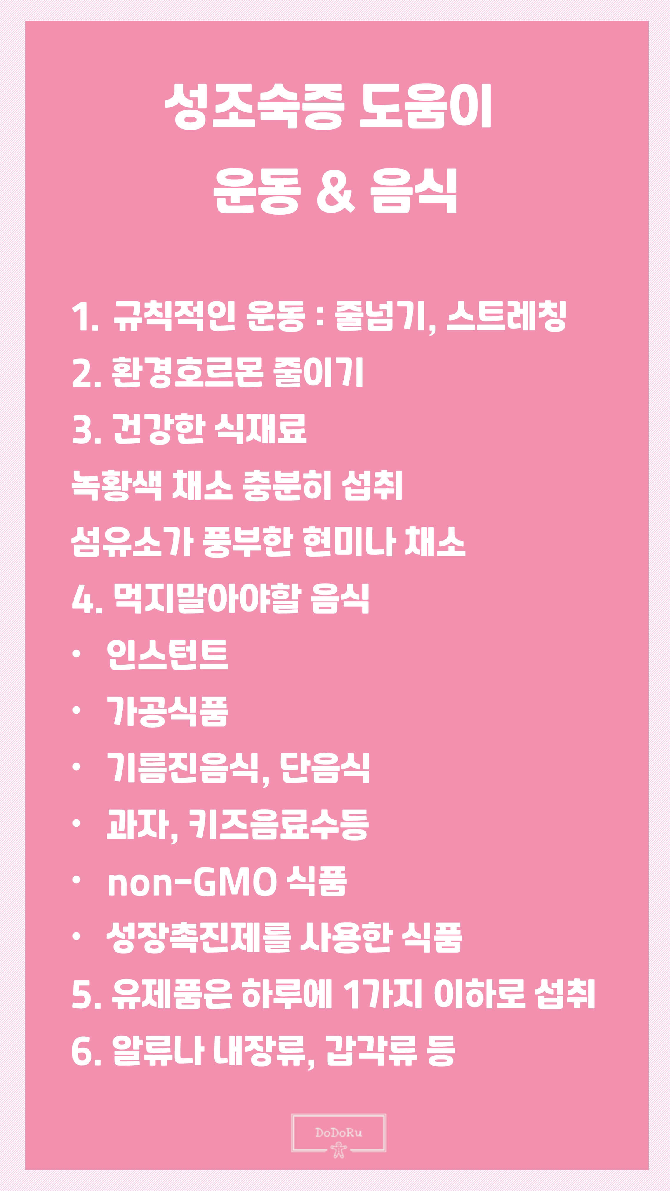 - 알류나 내장류, 갑각류 : 콜레스테롤이 높은 음식들 역시 비만으로 이어지거나 성호르몬의 재료가 될 수 있어서 자주 먹지 않고 과식하지 않는 게 좋습니다.