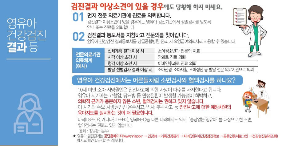 영유아 건강검진 결과는 검진기관에서 검진 후 바로 받을 수 있습니다. 검진결과보고서를 잃어버렸을 경우