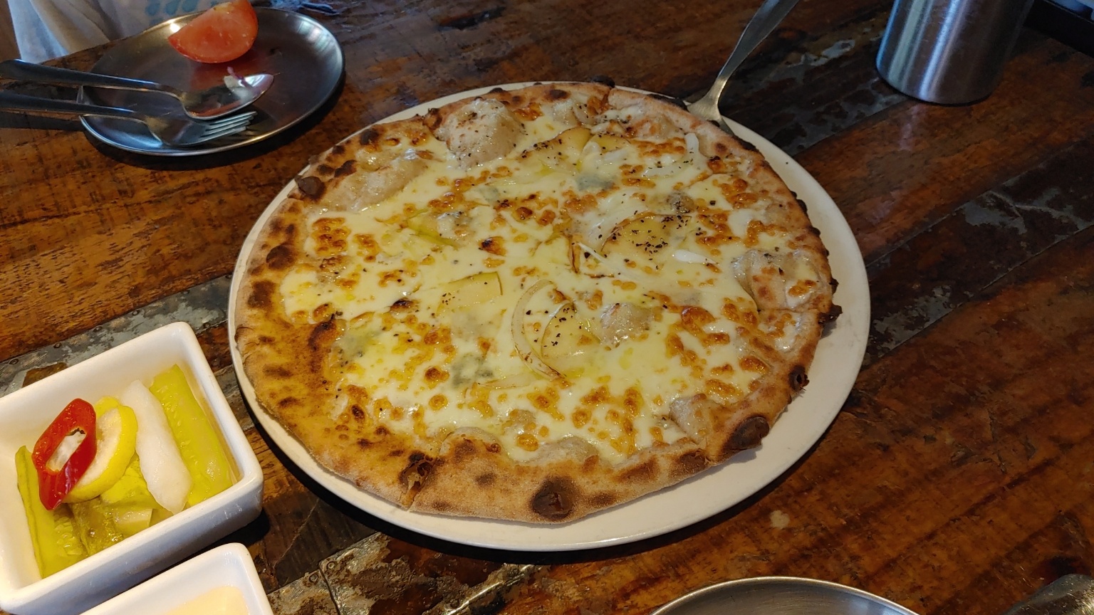 그리고 개인적으로 토마토보다는 크림파스타가 더 맛있었답니다. 그리고 아이들이 좋아하는 화덕피자 그중에서도 고르곤졸라피자랍니다. 꿀에 찍어먹는 맛이 엄청 좋아라 합니다.