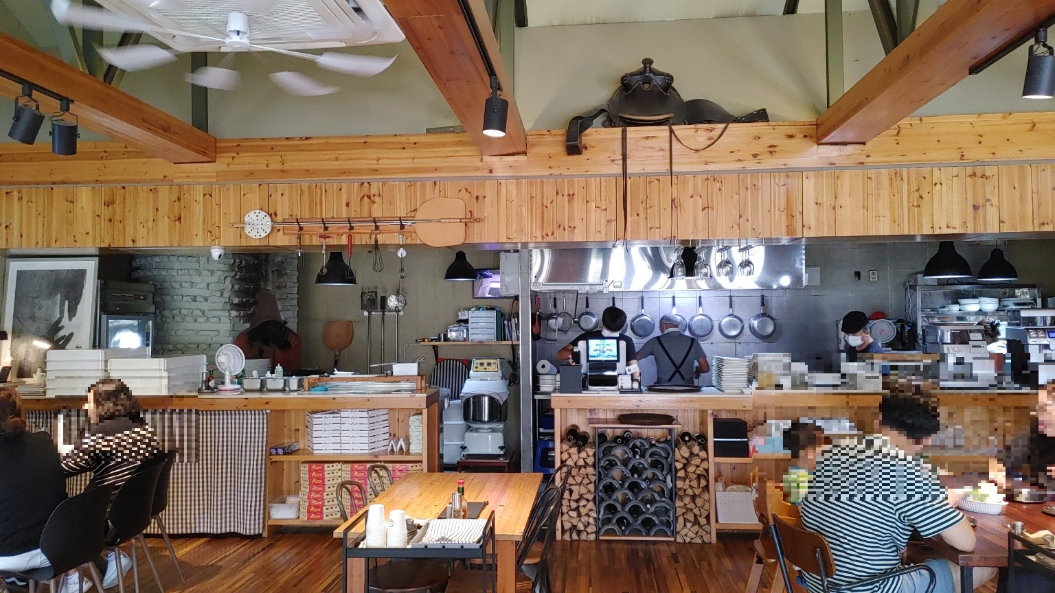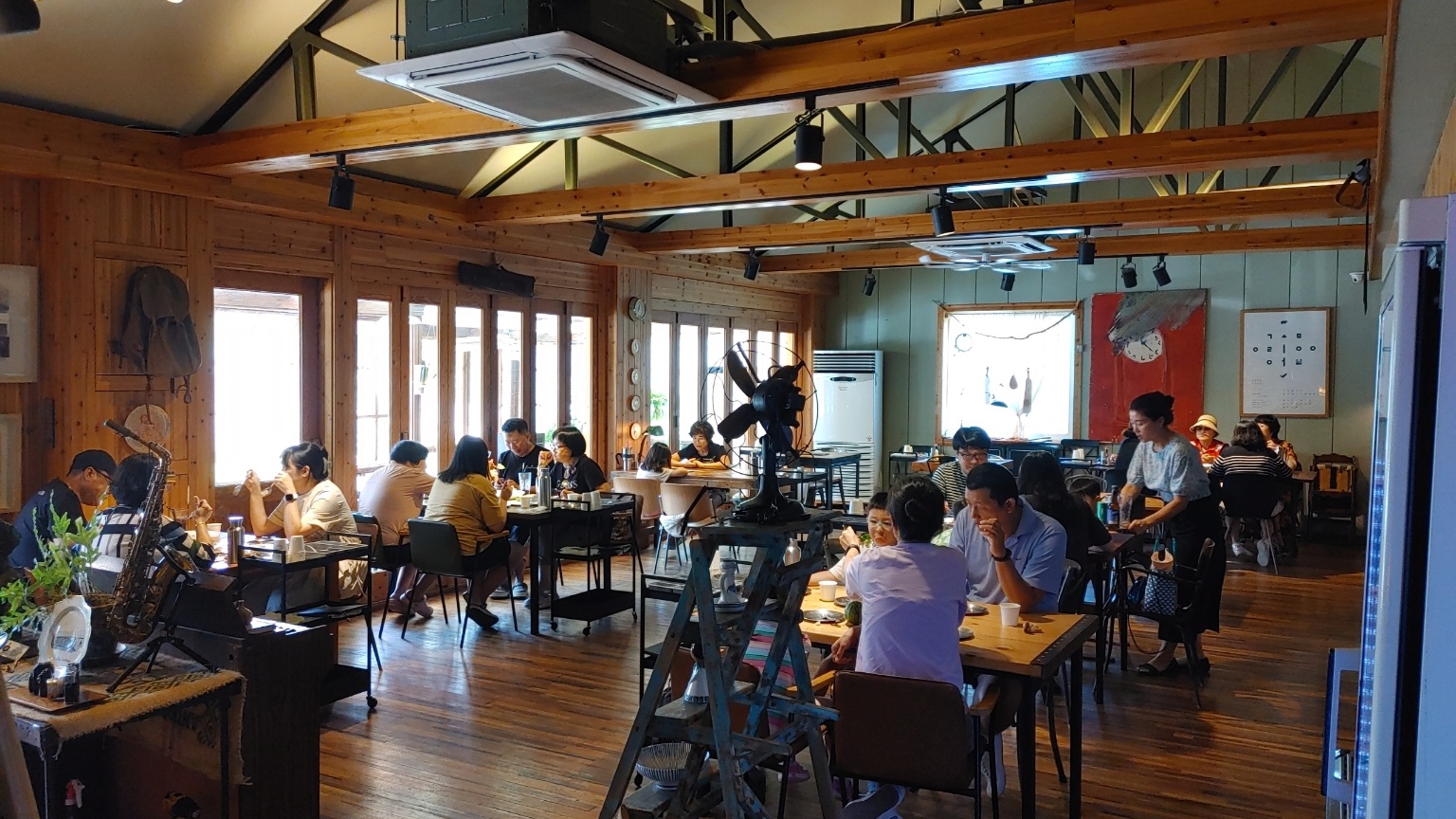 홀에 테이블은 8개가 있어요. 홀바로 옆에 테라스에도 테이블이 있는데 햇볕이 너무 뜨거워서 문을 닫아놓았더라고요.