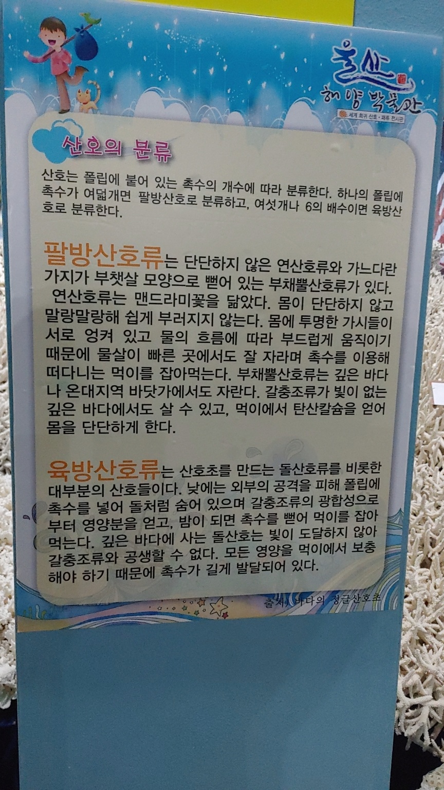 너무 이렇게 산호들만 진열하지 말고 중간중간 산화와 관련된 체험 같은 것들이 같이 있었다면 좋았을 것 같아요.