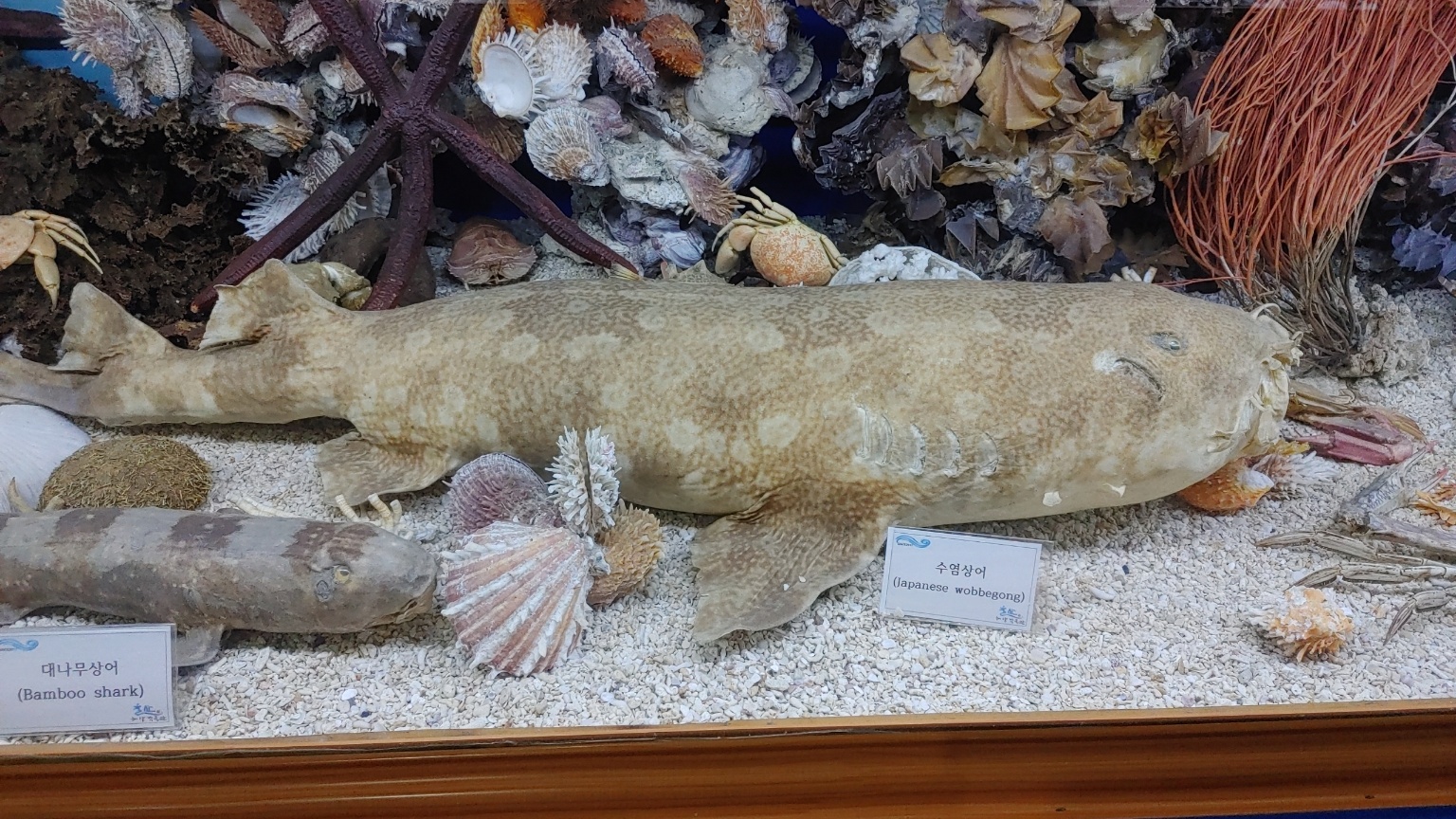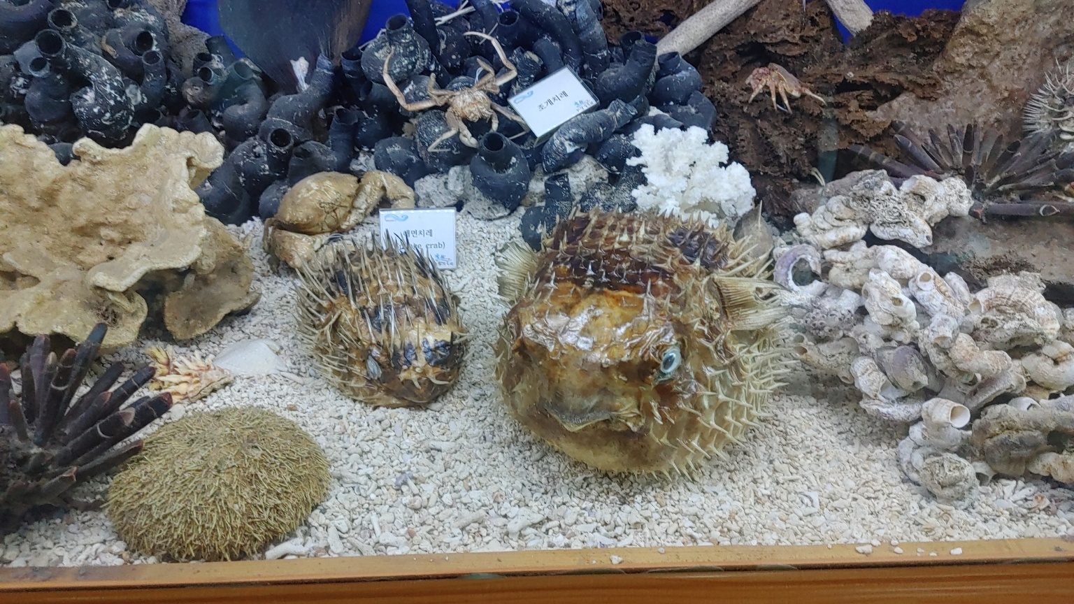 예전에 산동 물들을 박제해 놓은 건 봤는데, 바다동물들을 박제해놓은걸 보니 이것 또한 신기하더라고요.