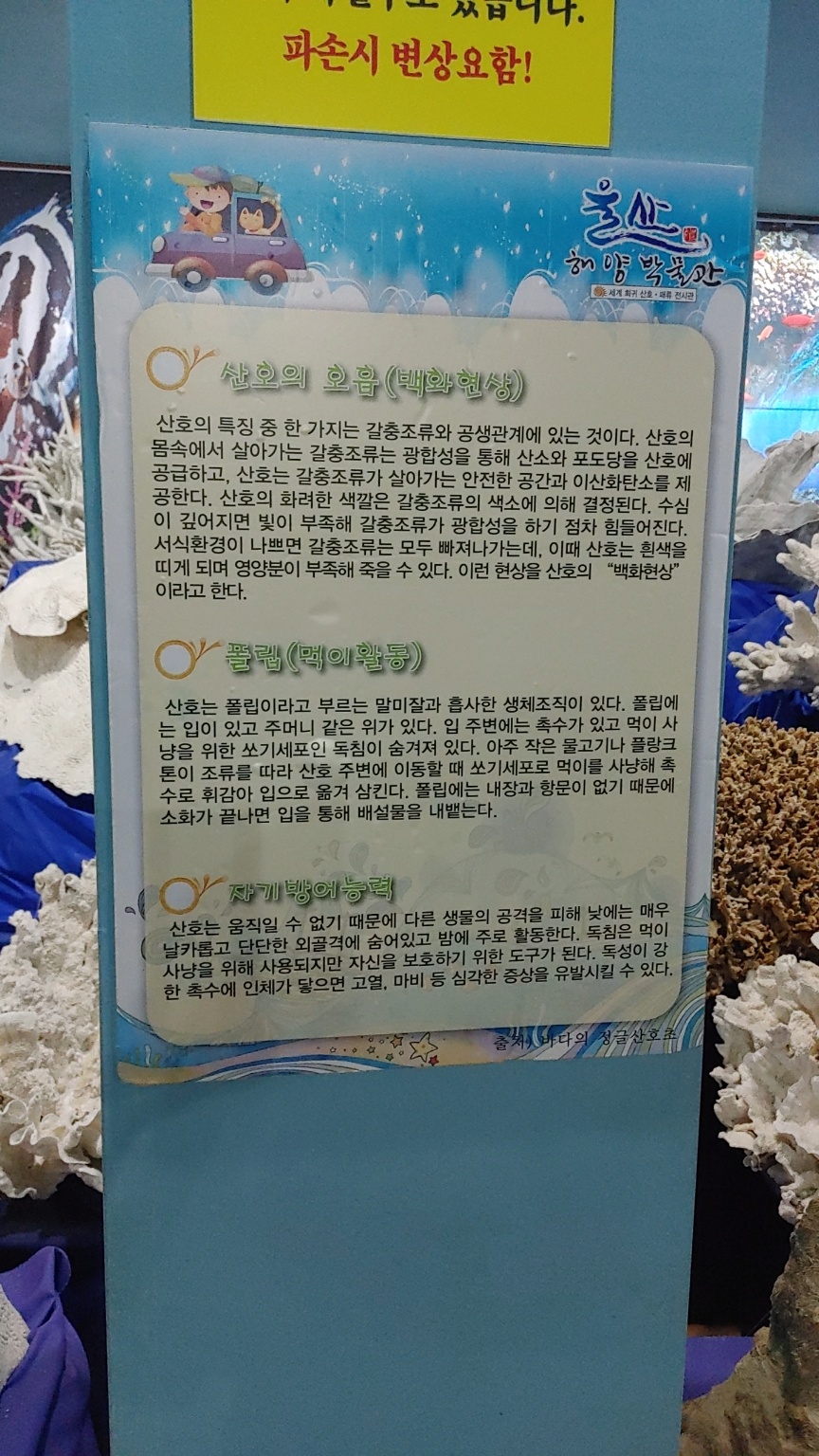 너무 이렇게 산호들만 진열하지 말고 중간중간 산화와 관련된 체험 같은 것들이 같이 있었다면 좋았을 것 같아요.
